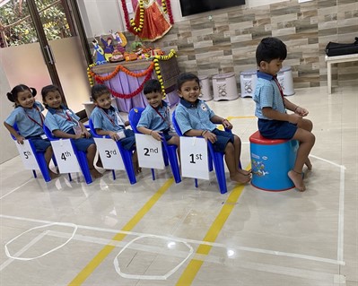 Jr kg has readiness activities ranging from simple to complex to prepare children for senior KG.