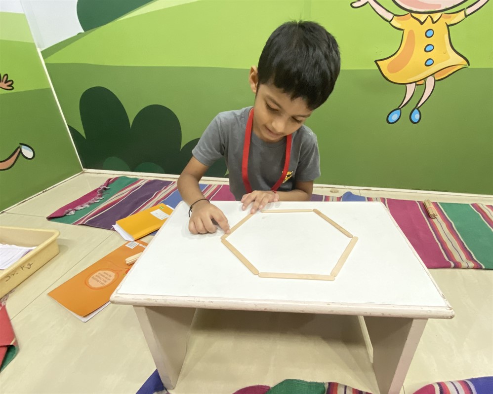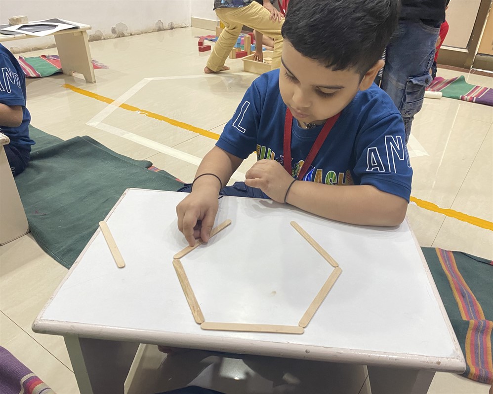 Children learned to identify and explore the six-sided hexagon shape through engaging hands-on activities.