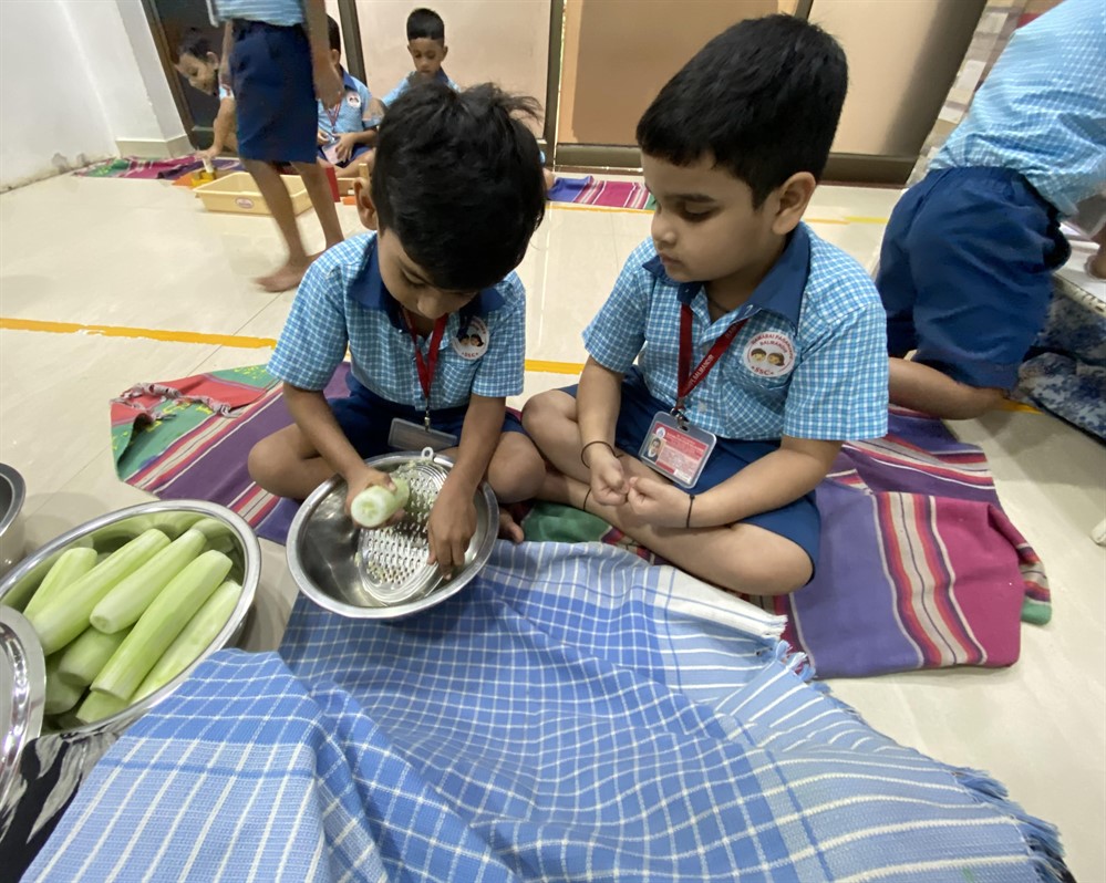 Kids enjoyed a fun, hands-on cucumber grating activity while learning about healthy eating habits.