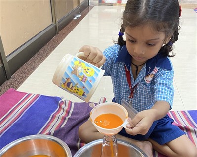 Kids learned the importance of water and motor skills by joyfully filling bottles with water.