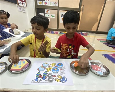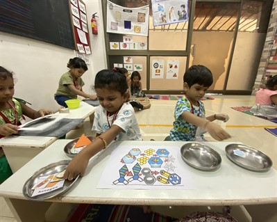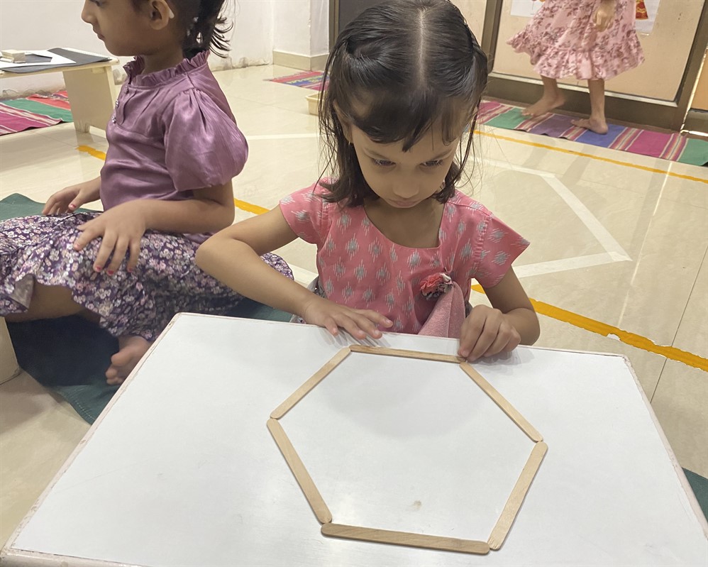 Children learned to identify and explore the six-sided hexagon shape through engaging hands-on activities.