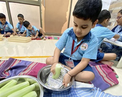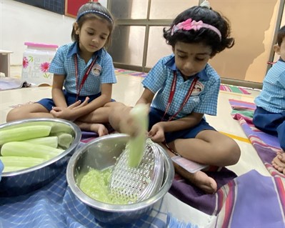 Kids enjoyed a fun, hands-on cucumber grating activity while learning about healthy eating habits.