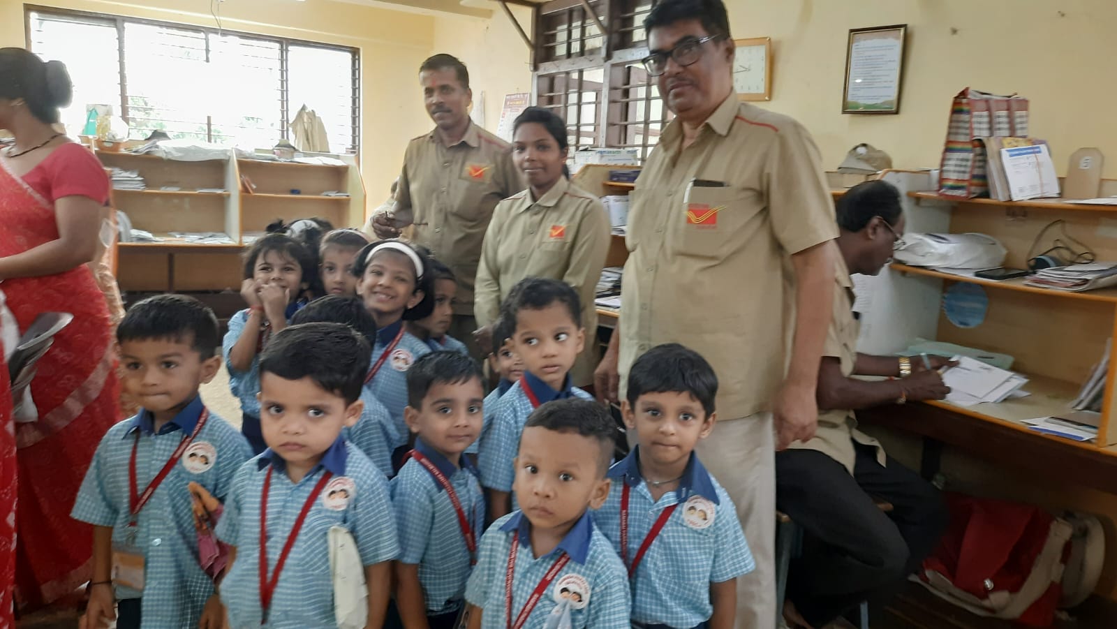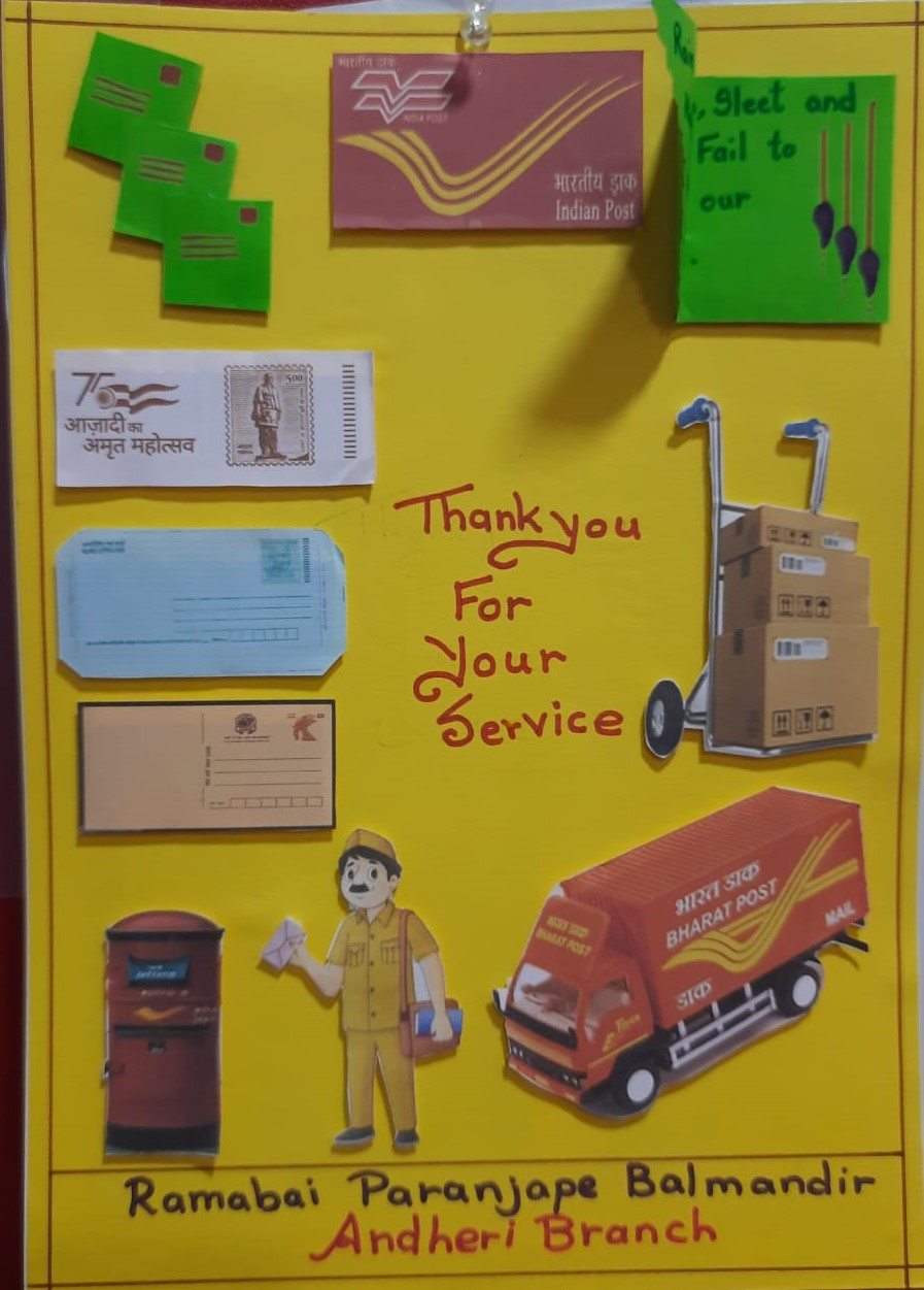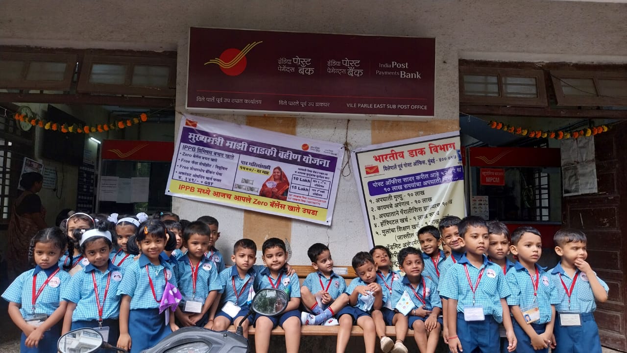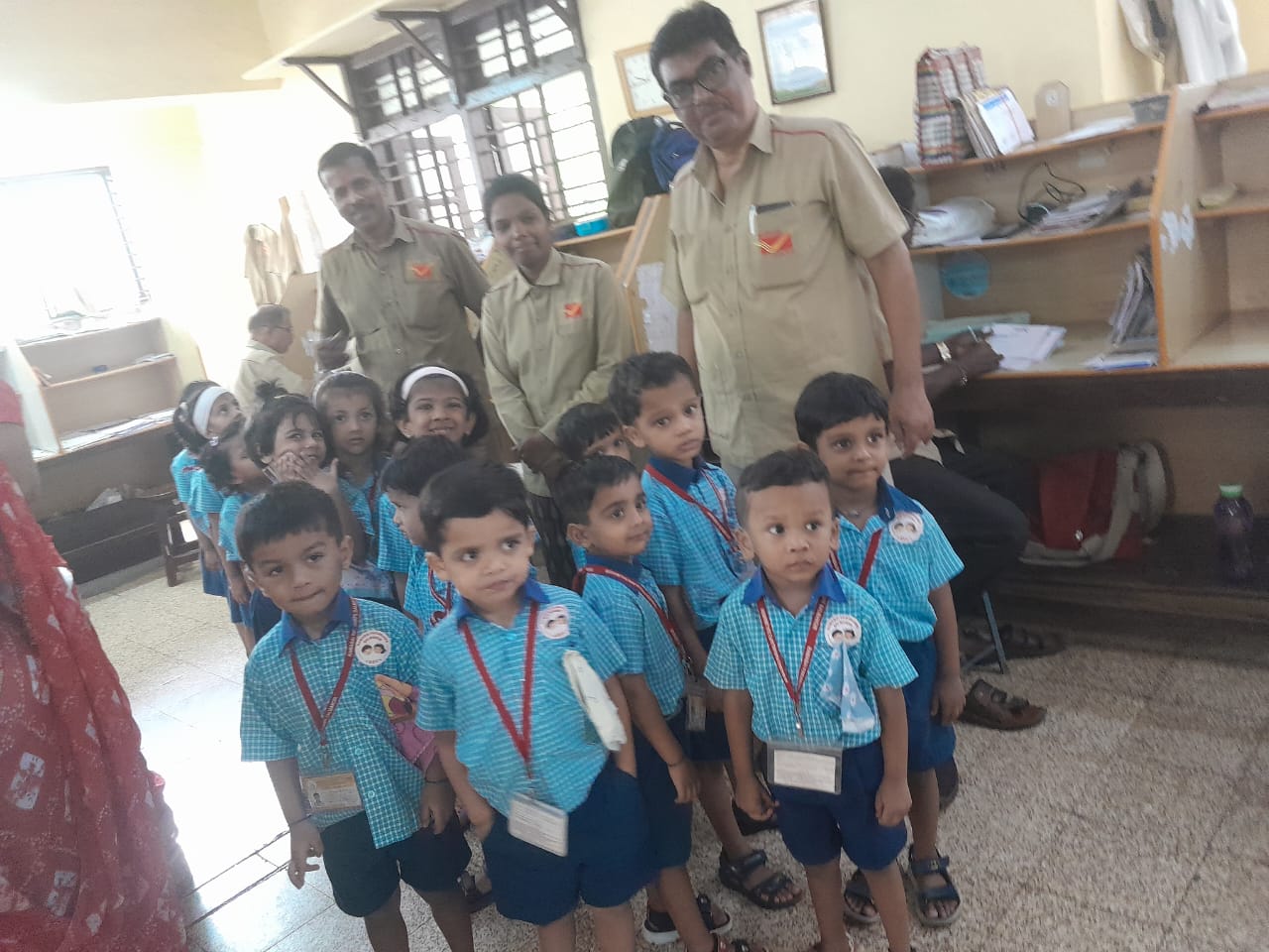 A field trip was organized to the Post Office for Jr. KG children. Information about working of postman was explained to the children.
