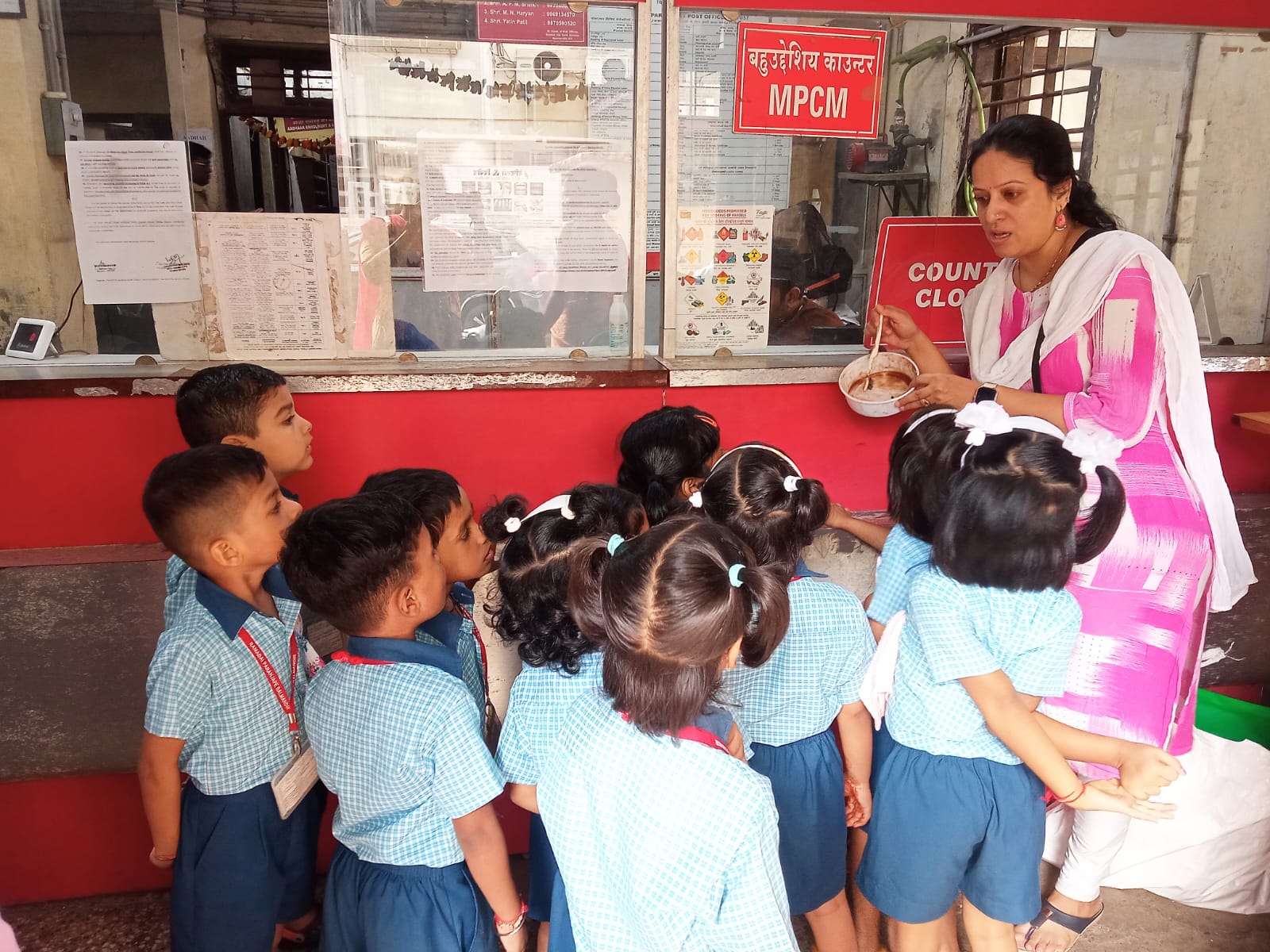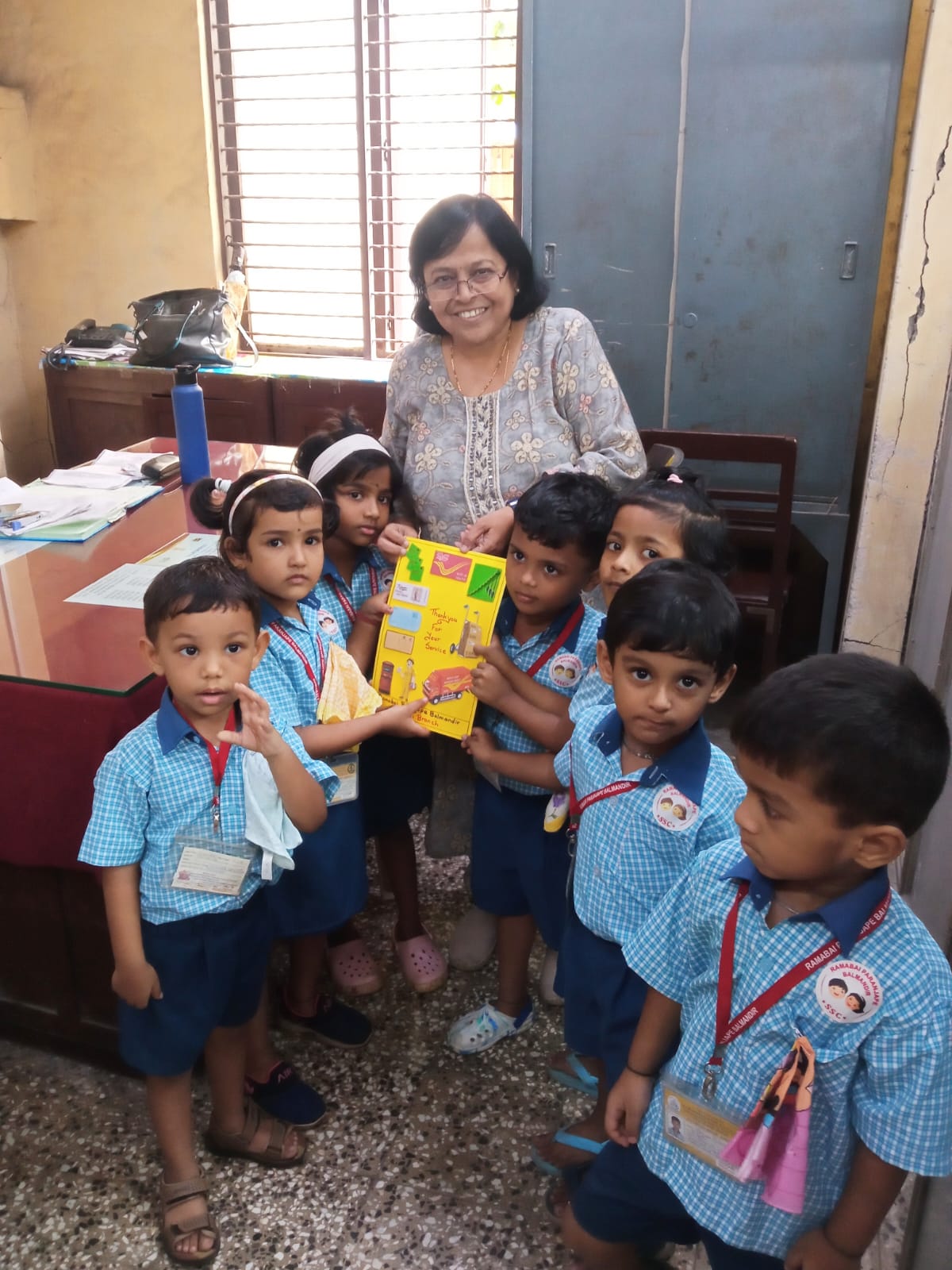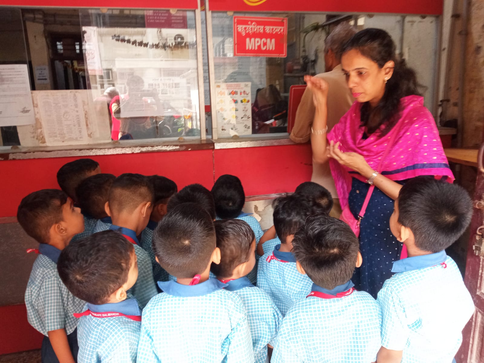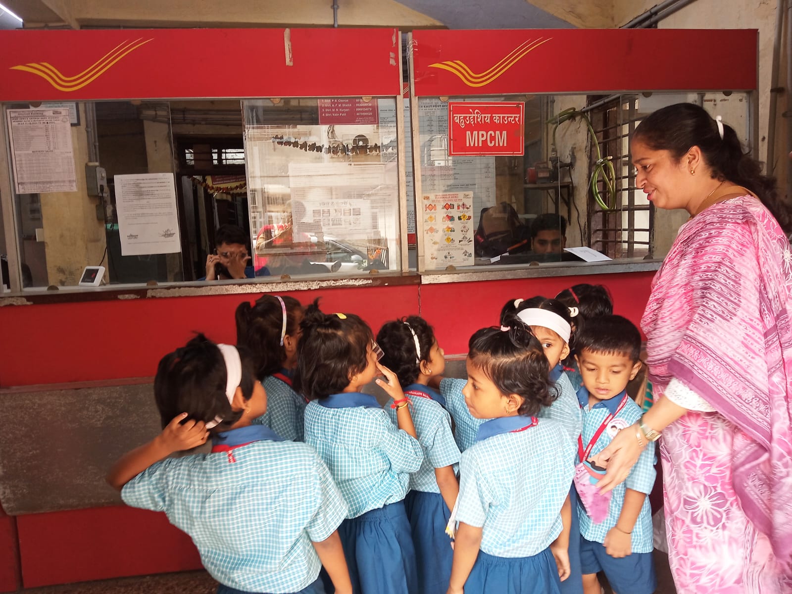 A field trip was organized to the Post Office for Jr. KG children. Information about working of postman was explained to the children.