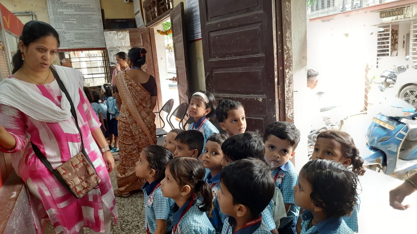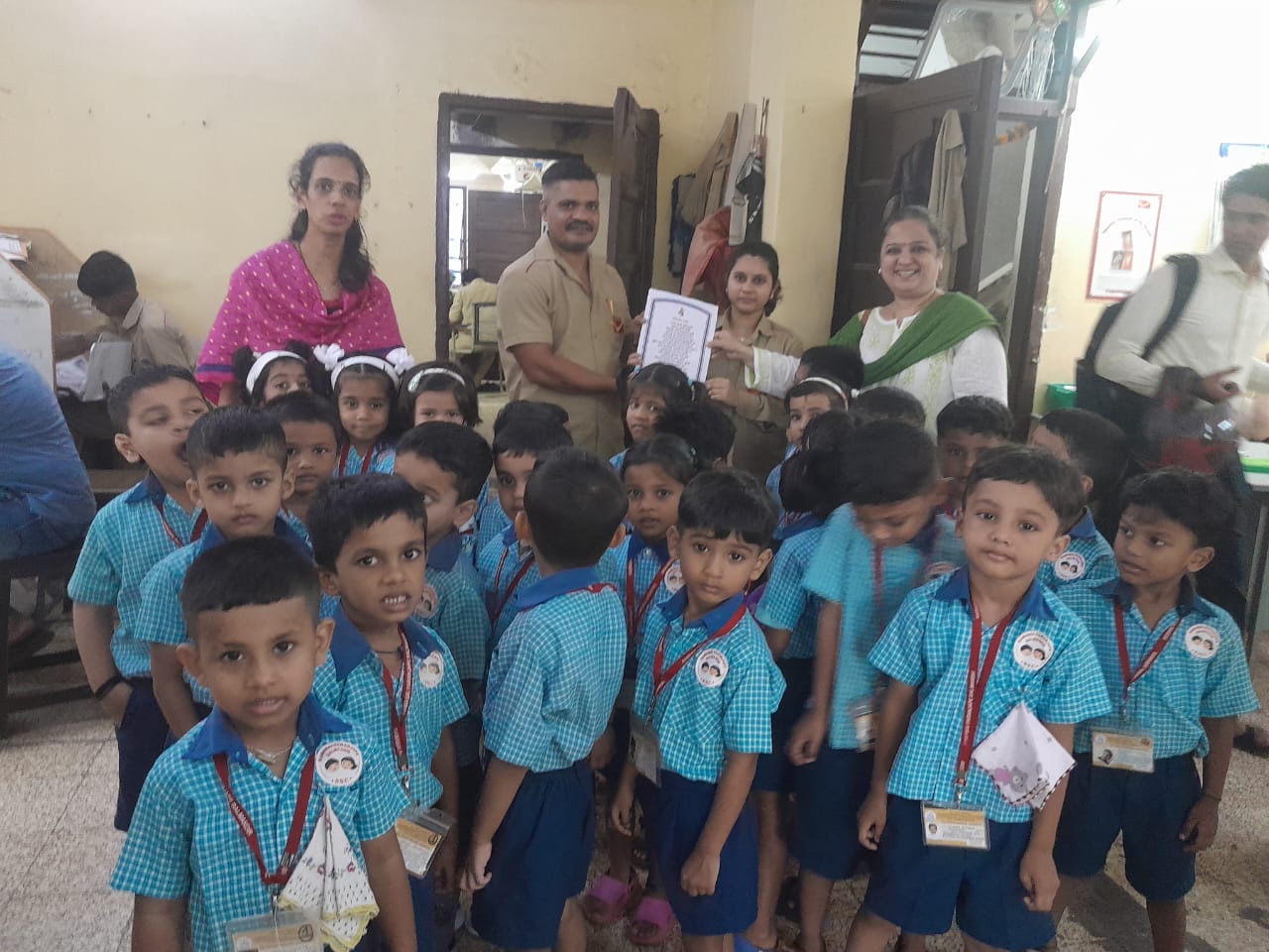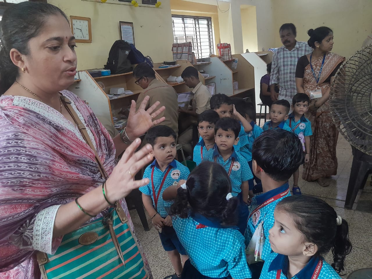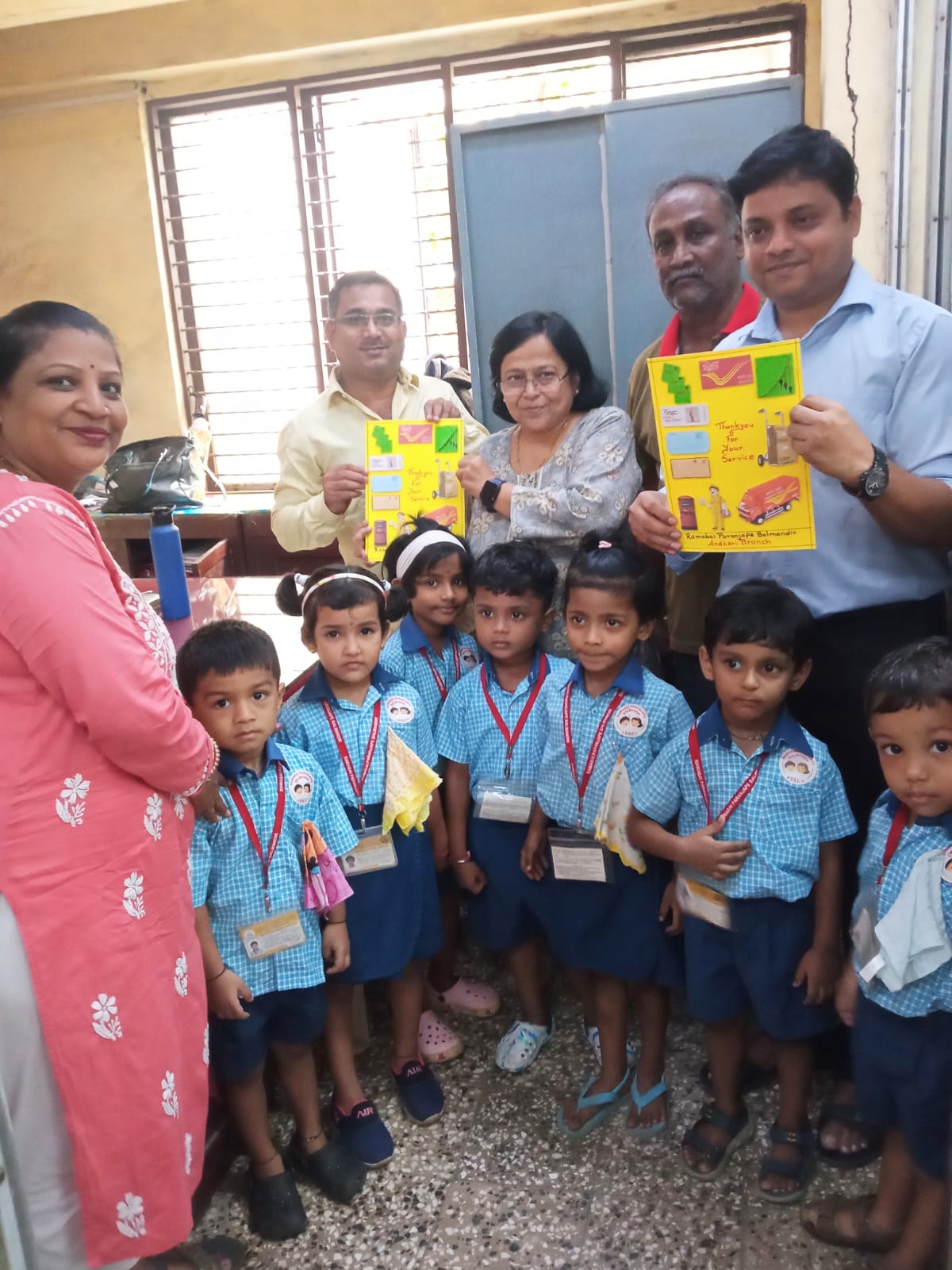 A field trip was organized to the Post Office for Jr. KG children. Information about working of postman was explained to the children.