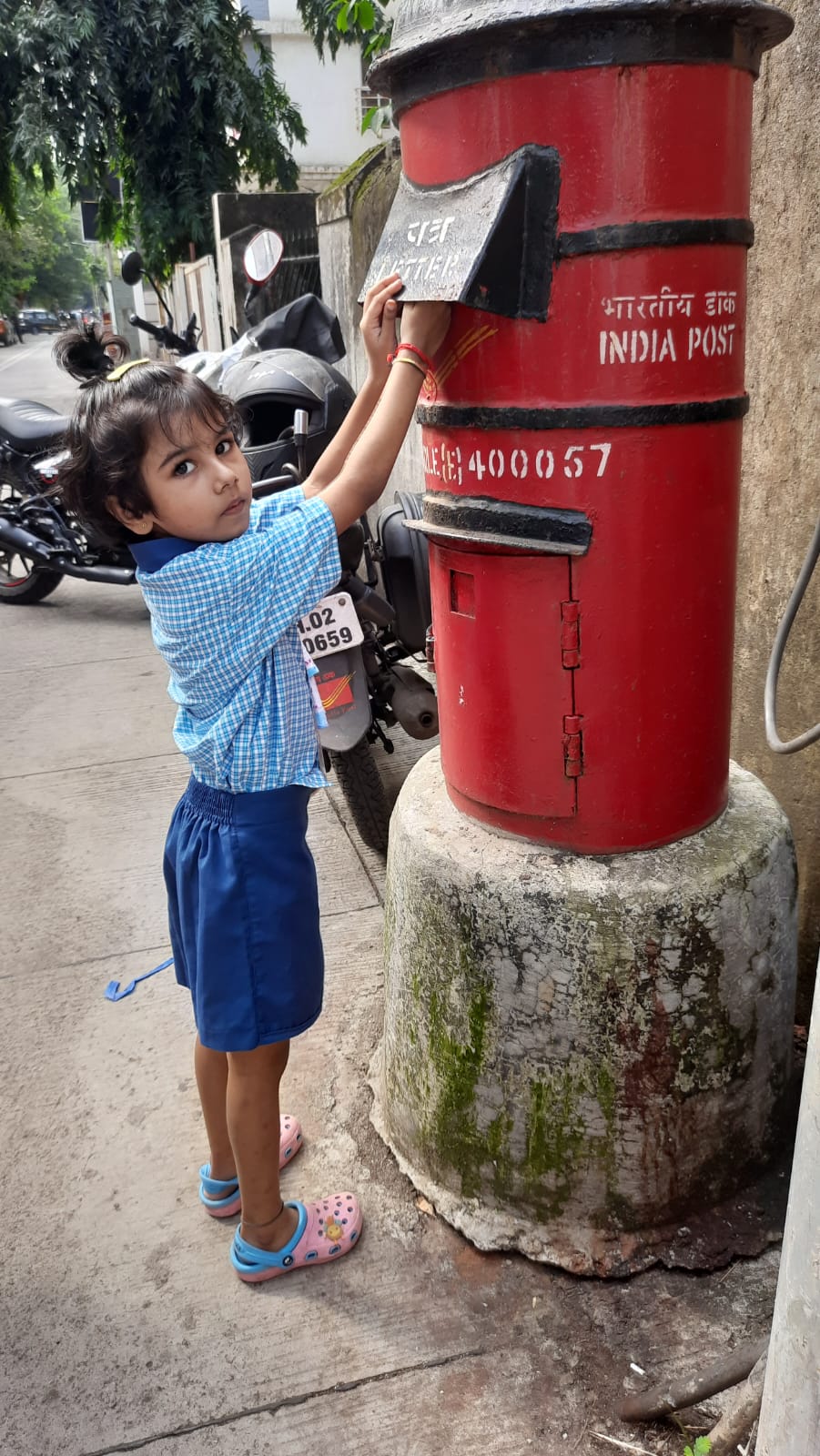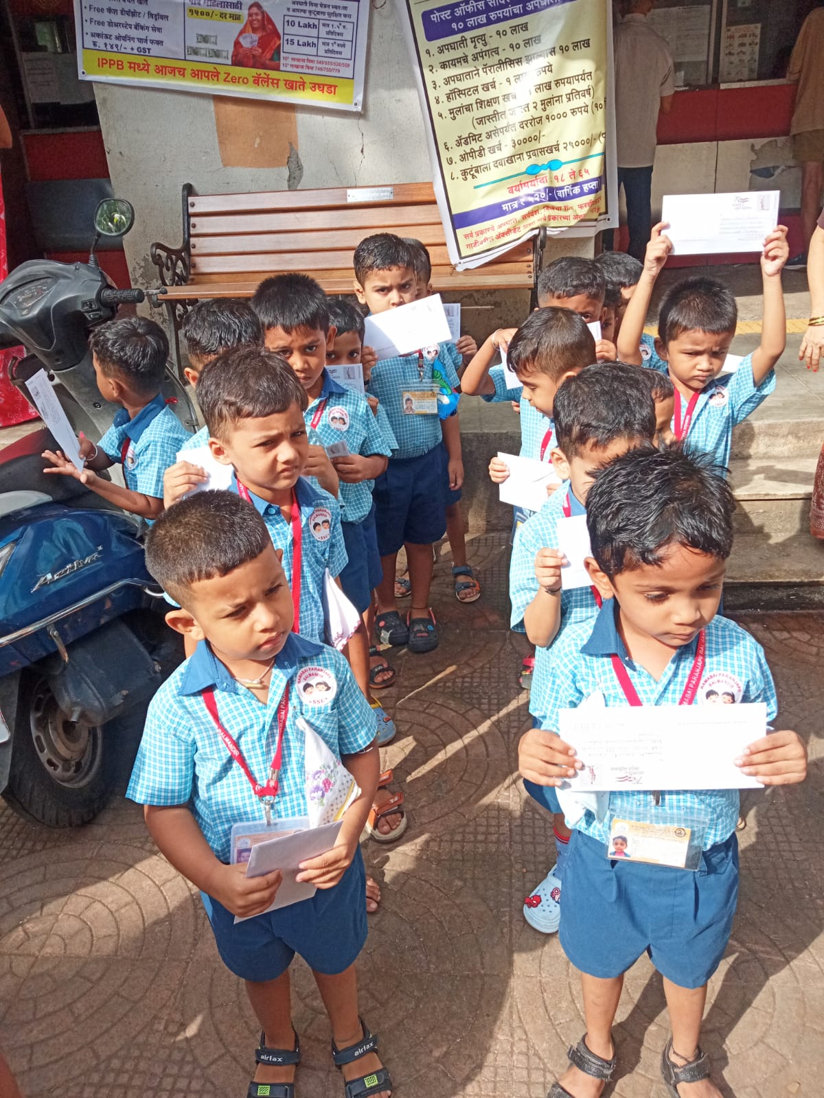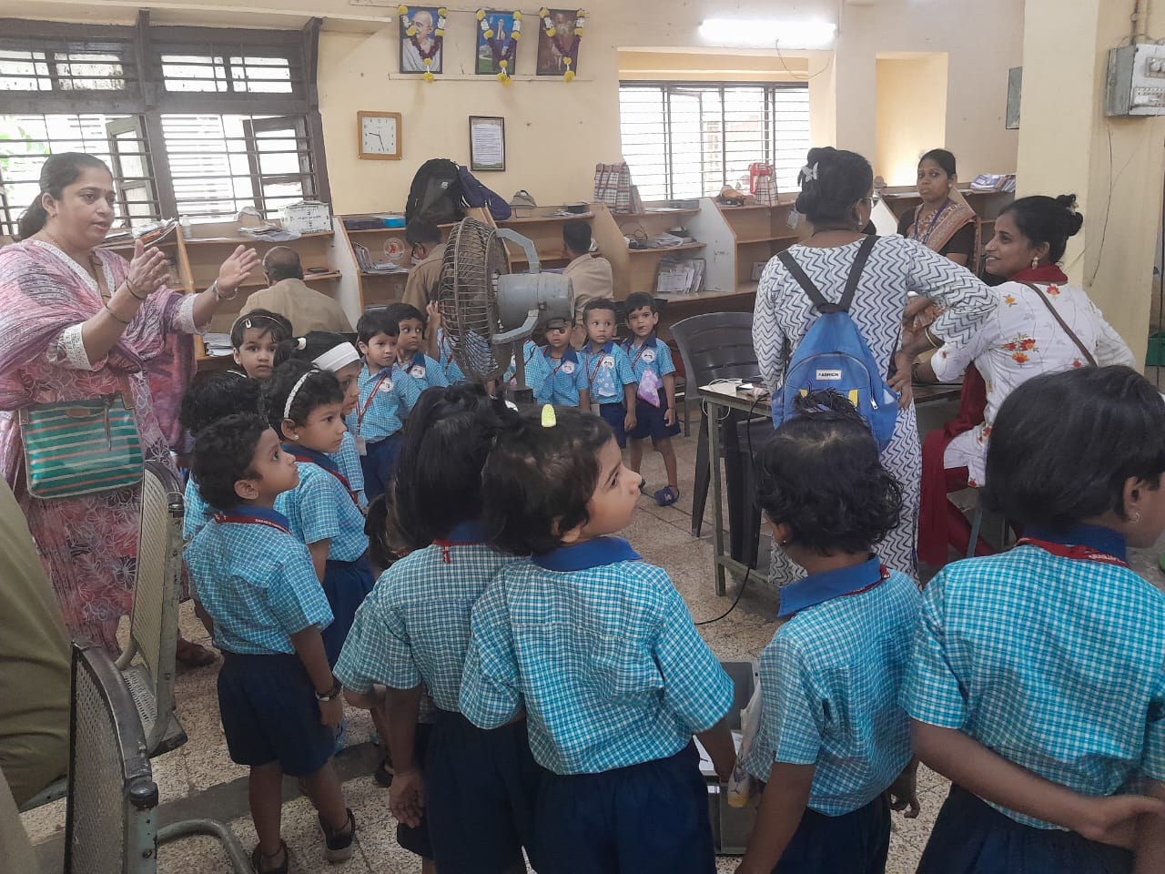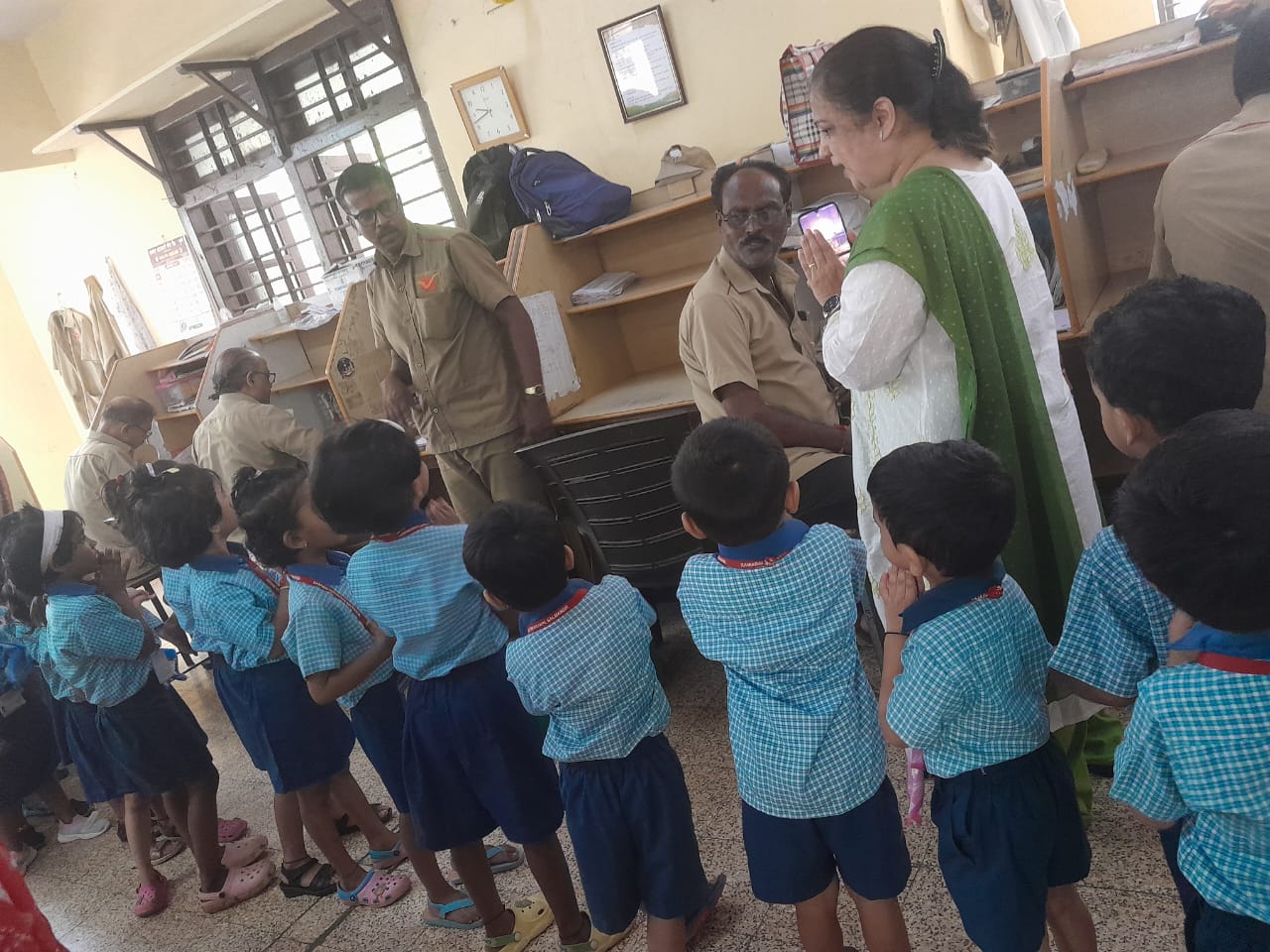 A field trip was organized to the Post Office for Jr. KG children. Information about working of postman was explained to the children.