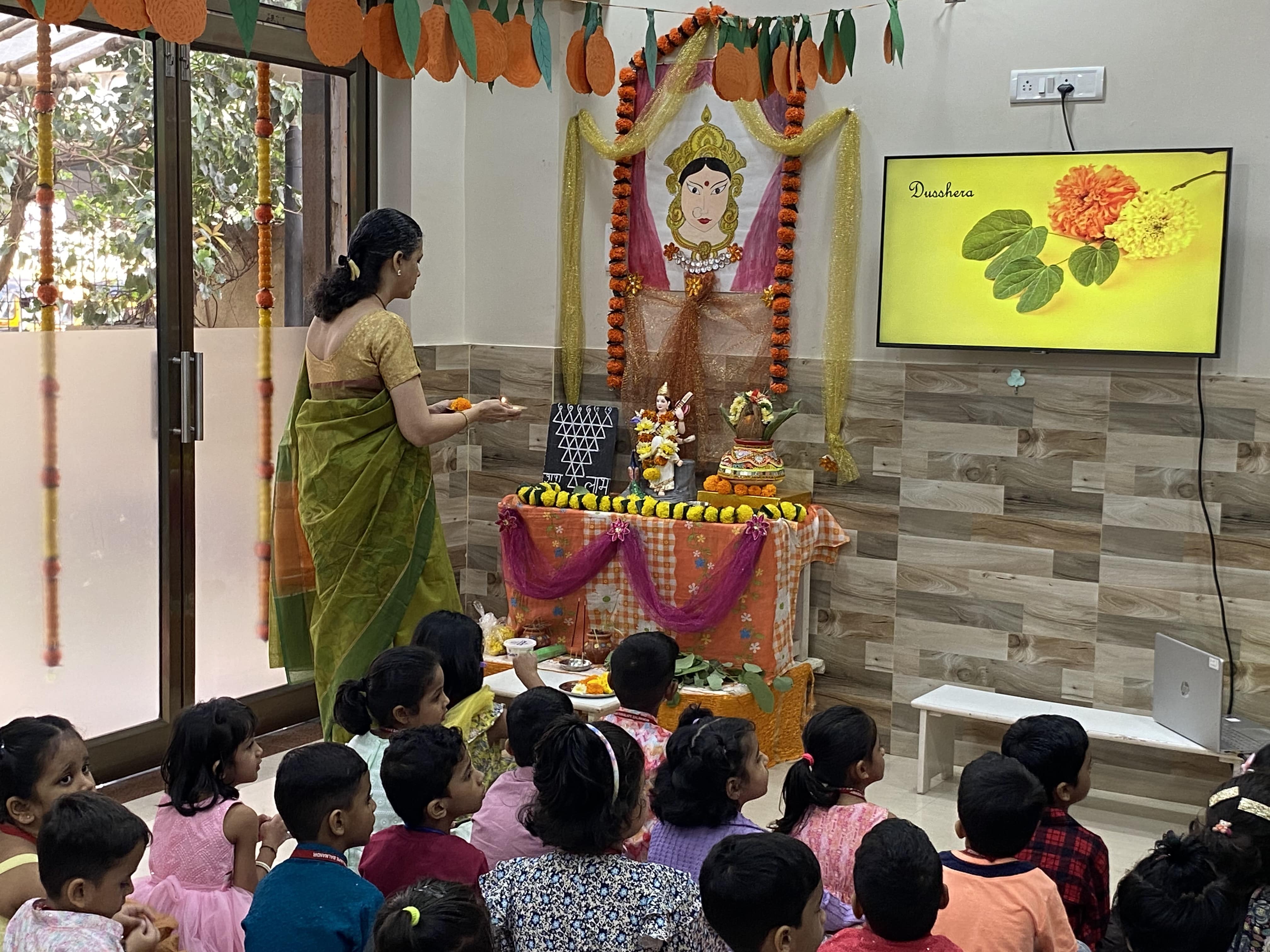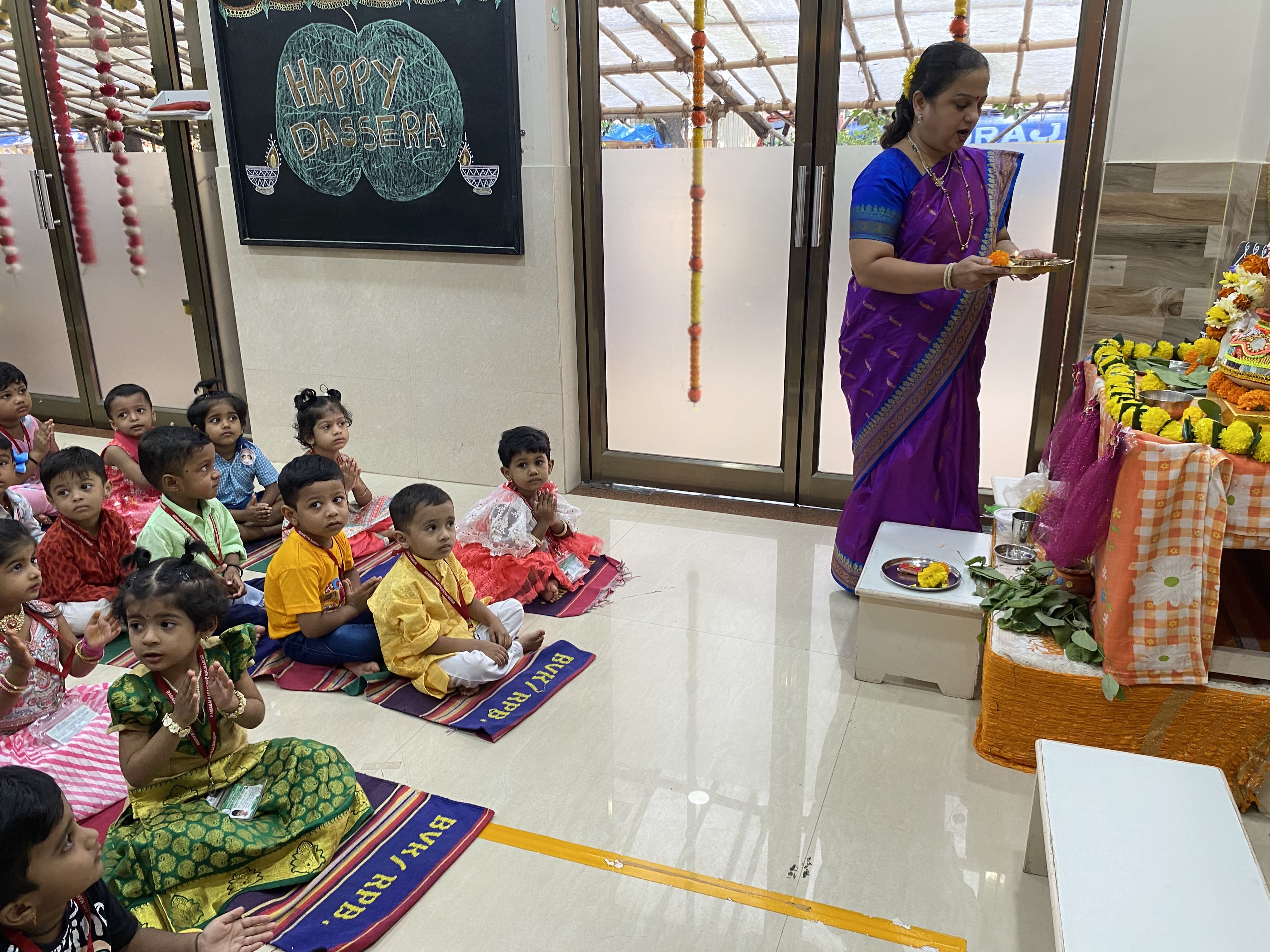 On the auspicious occasion of Dassera, on Friday, 11th October 2024, children prayed to Goddess Saraswati by offering flowers and singing songs and sought her blessings.
