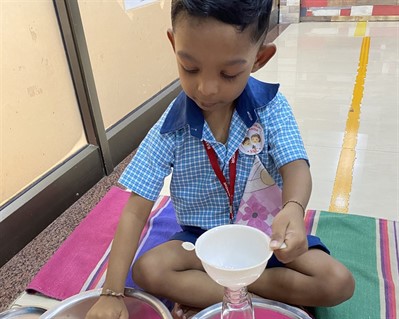 Kids learned the importance of water and motor skills by joyfully filling bottles with water.