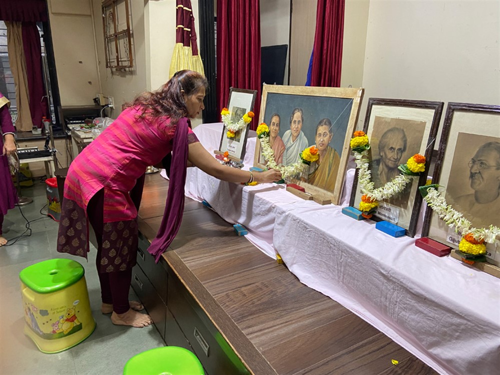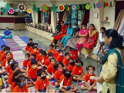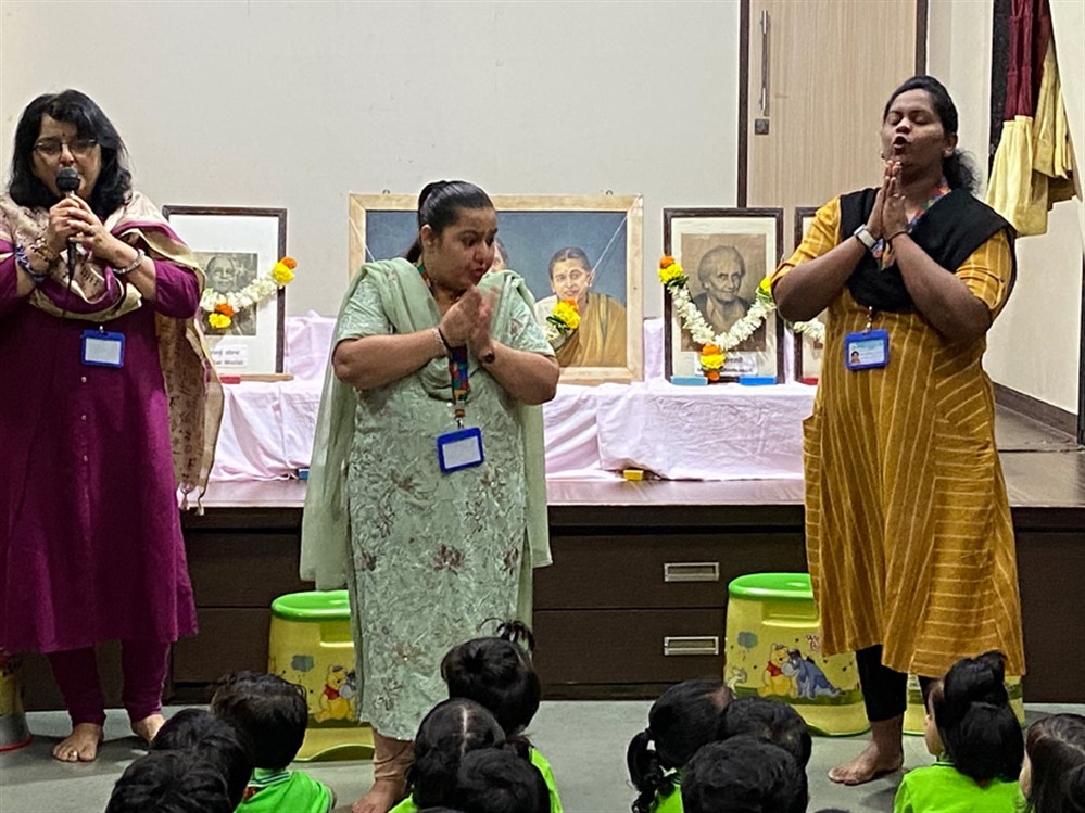 Guru Purnima / Vyasa Purnima is celebrated to highlight the bond between Guru (Teacher) and Shishya (disciple). It is celebrated on the full moon day of Ashadh month. This day is widely observed to recognize the significant contribution of teachers in our lives. As a gesture of gratitude, we pay our respects to our founder members Smt Radhabai Chittar, Smt Sharadabai Chitale & Smt Shashikala Kasargoad. Principal ma’am, Teachers and students offer tribute to educators like Tarabai Modak, Gijubhai Badheka and Madam Maria Montessori who laid the foundation of early education. Children celebrate the day by singing shlokas and by bowing before their teachers and seeking their blessings for their guidance.