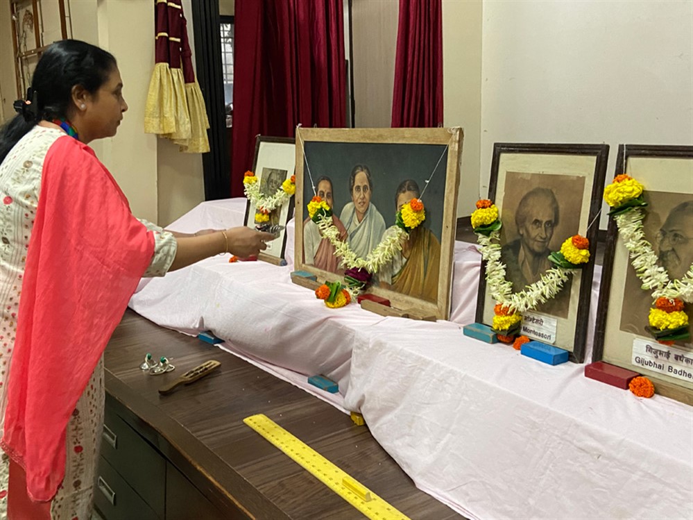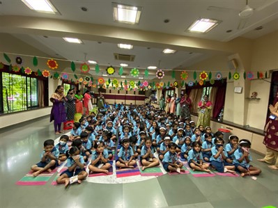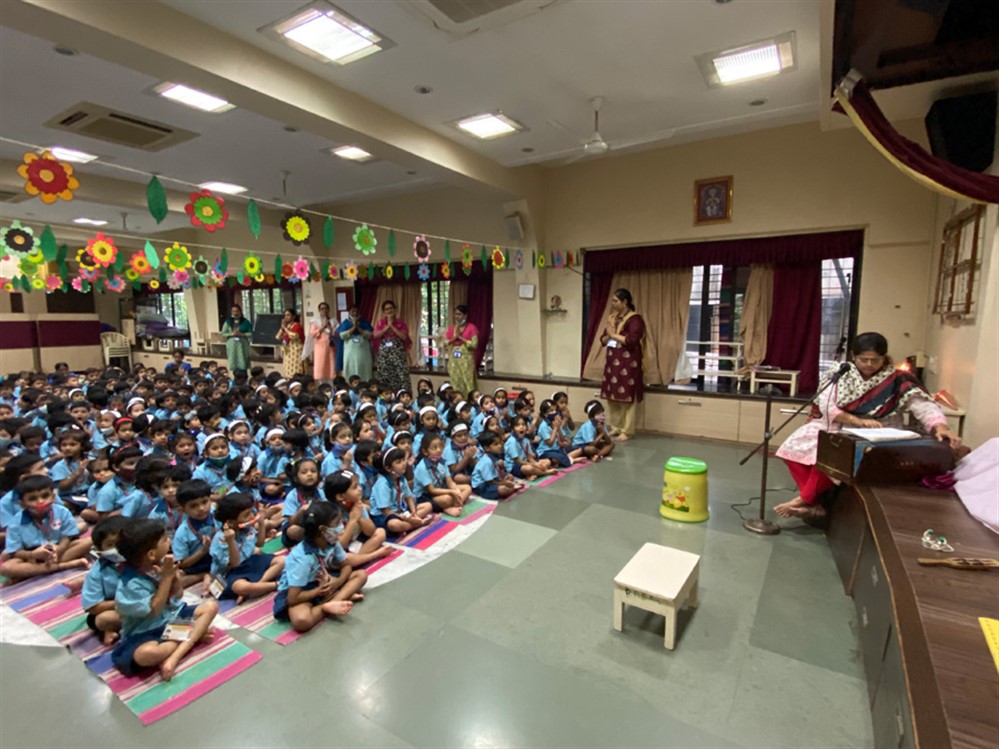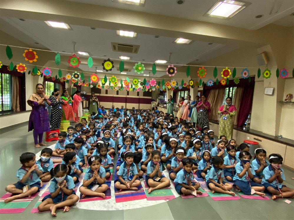 Guru Purnima / Vyasa Purnima is celebrated to highlight the bond between Guru (Teacher) and Shishya (disciple). It is celebrated on the full moon day of Ashadh month. This day is widely observed to recognize the significant contribution of teachers in our lives. As a gesture of gratitude, we pay our respects to our founder members Smt Radhabai Chittar, Smt Sharadabai Chitale & Smt Shashikala Kasargoad. Principal ma’am, Teachers and students offer tribute to educators like Tarabai Modak, Gijubhai Badheka and Madam Maria Montessori who laid the foundation of early education. Children celebrate the day by singing shlokas and by bowing before their teachers and seeking their blessings for their guidance.