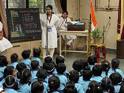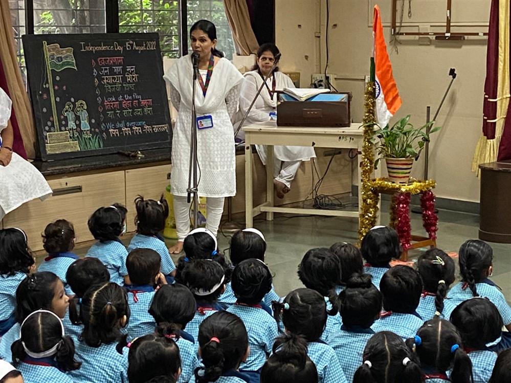 Come August 15th, India celebrates its Independence Day. It is a memorable and historic day in the lives of every Indian. This year India is celebrating `Azadi ka Amrit Mahotsav’ with great fanfare to commemorate India’s 75 years of independence. As a part of this Mahotsav our Prime Minister has organised the campaign `Har Ghar Tiranga’ and has called for hoisting of Indian Tri-colour in every house, school, college, office throughout the country between August 13th and August 15th. President of India addresses the nation on the eve of Independence Day. On this day, our Prime Minister hoists the Indian tricolour at the Red Fort and addresses the nation with a speech. Independence day is also celebrated in our school by hoisting of the Indian national flag by our respected Principal - Vile Parle, Smt. Purnimatai Shastri, Vice-Principal, Smt. Shamalitai More and Principal - Andheri branch Smt. Mrudulatai Phadke and Vice-Principal Smt. Anushreetai Orpe respectively. This is followed by providing information and explaining importance of this day. Students also sing national anthem and marching songs.