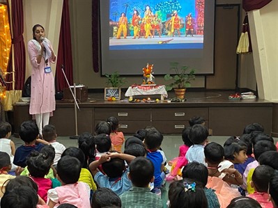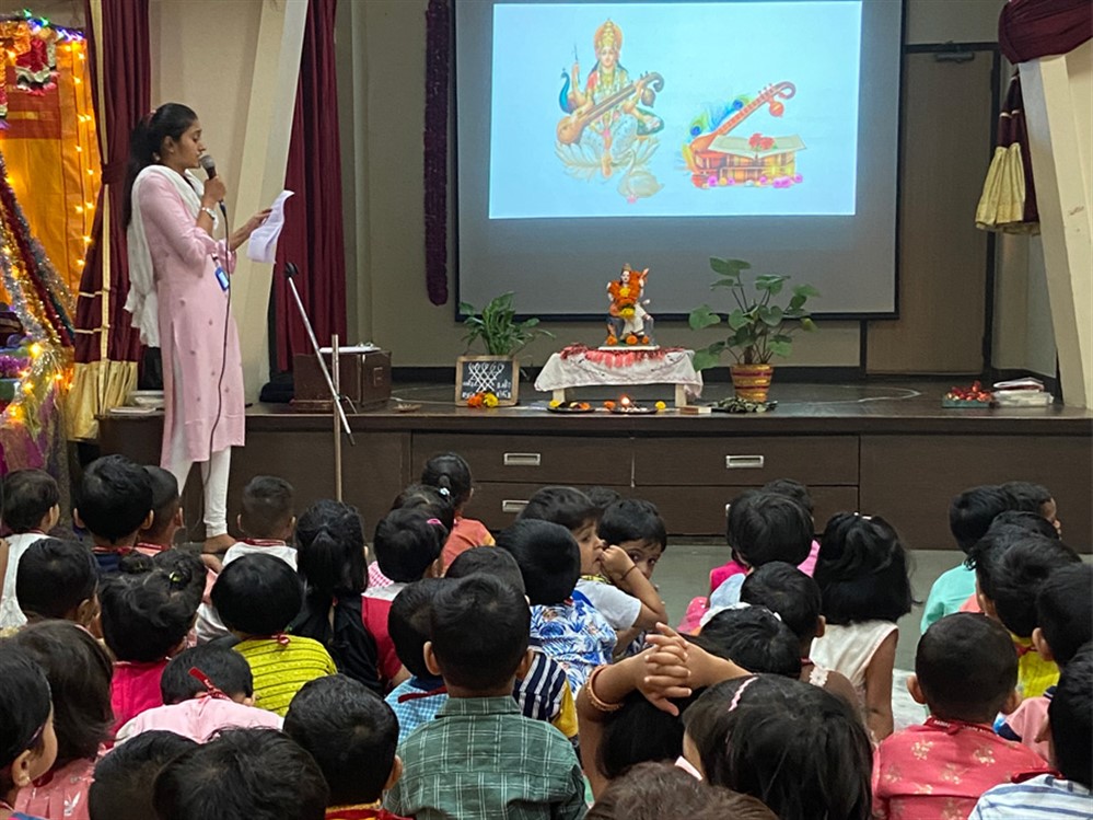On the auspicious occasion of Dassera, children prayed to Godess Saraswati by offering flowers and singing songs and sought her blessings.