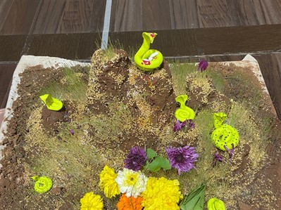 हिंदू दिनदर्शिकेनुसार श्रावण महिन्यातील पहिला आणि महत्वाचा सण म्हणजे नागपंचमी होय. ह्या दिवशी नागाच्या प्रतिमेची किंवा मातीच्या नागदेवतेची पूजा केली जाते. श्रावण महिन्यातील पंचमीला नागपंचमी हा सण मोठ्या उत्साहात व आनंदात साजरा केला जातो. नागाच्या, सापाच्या अनेक जाती ,प्रजाती आहेत. काही नाग हे उपयोगी व काही अपायकारक असतात. नाग,साप शेतातील माती भुसभुशीत करतात, तसेच नाग शेतातील उंदीर व घुशी खातात त्यामुळे पिकाचे संरक्षण होते म्हणून नागाला शेतकऱ्याचा मित्र म्हणतात. म्हणूनच नागपंचमीच्या दिवशी नागांची सुरक्षा करण्याचा संकल्प केला जातो. शेतकरी नागाची व नागाच्या पिल्लांची पाटावर मनोभावे पूजा करून प्रार्थना करतात तसेच त्याबरोबर शेतीच्या अवजारांची पूजा करतात. आपल्या शाळेत देखील नागपंचमी हा सण मोठ्या उत्साहात साजरा केला जातो. आज आपल्या शाळेच्या उपमुख्याध्यापिका ,शामलीताईंनी गंध फुले वाहून नागाची पूजा केली व सर्व मुलांनी श्लोक ,आरती ,गाणे म्हणून नागाला वंदन केले.