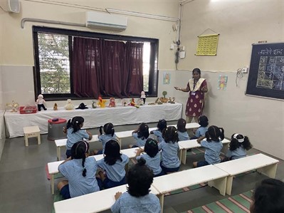 मुलांच्या सर्वांगीण विकासासाठी लागणारी शिकवण्याची व शिकण्याची वेगवेगळी साधने वापरून मोठ्या शिशुच्या मुलांसाठी शाळेत एक कृतीसत्राचे आयोजन केले होते.