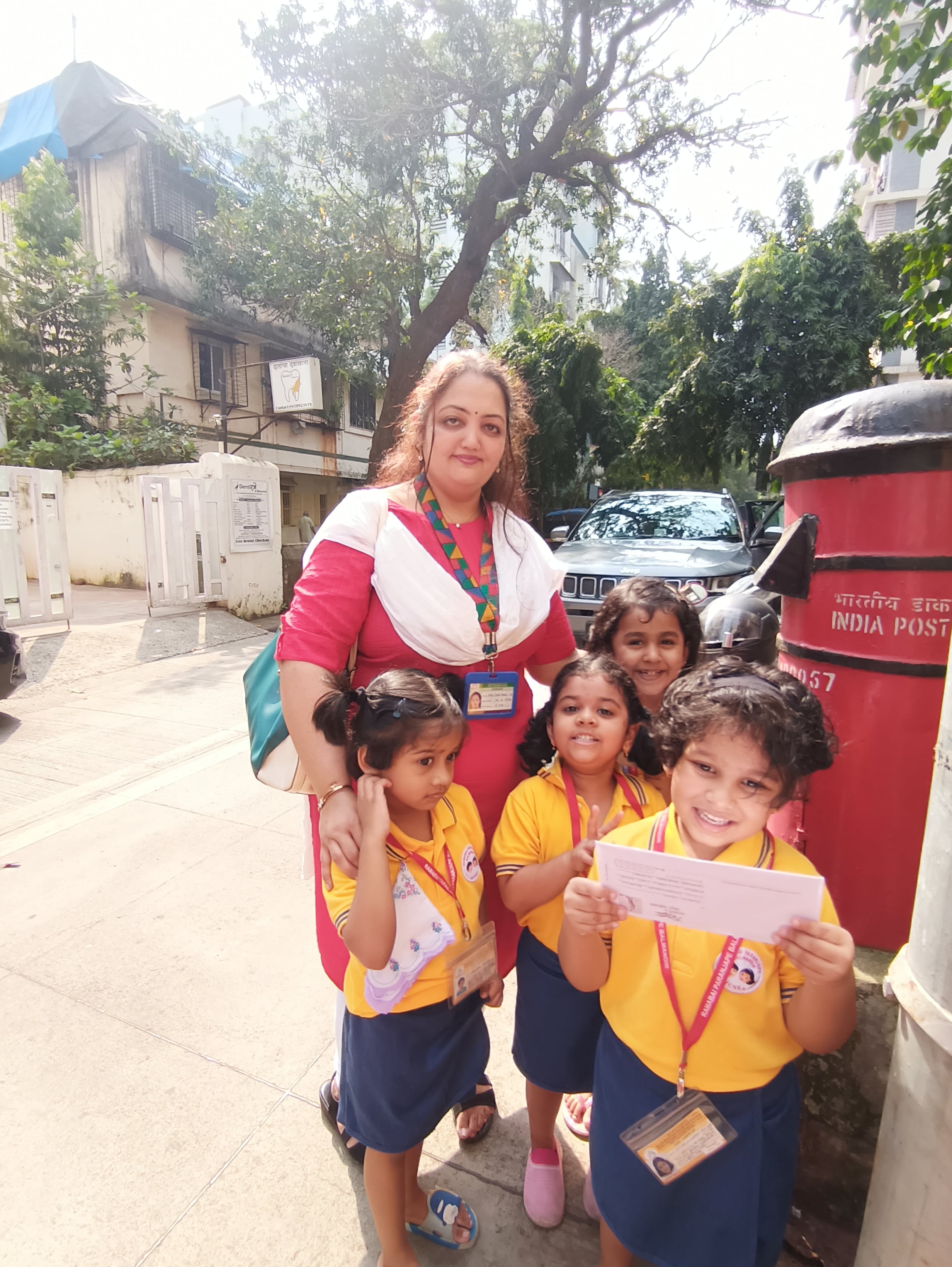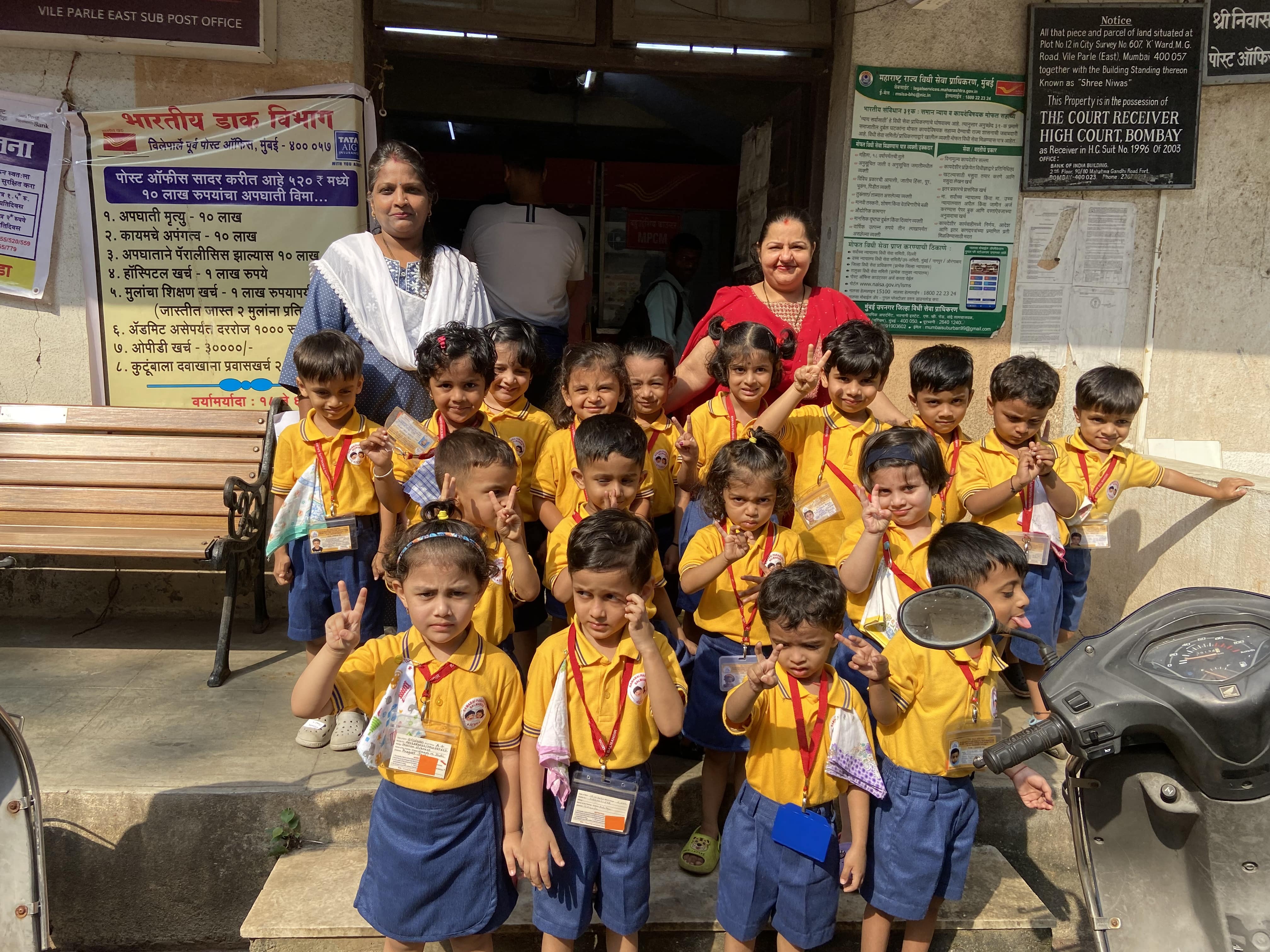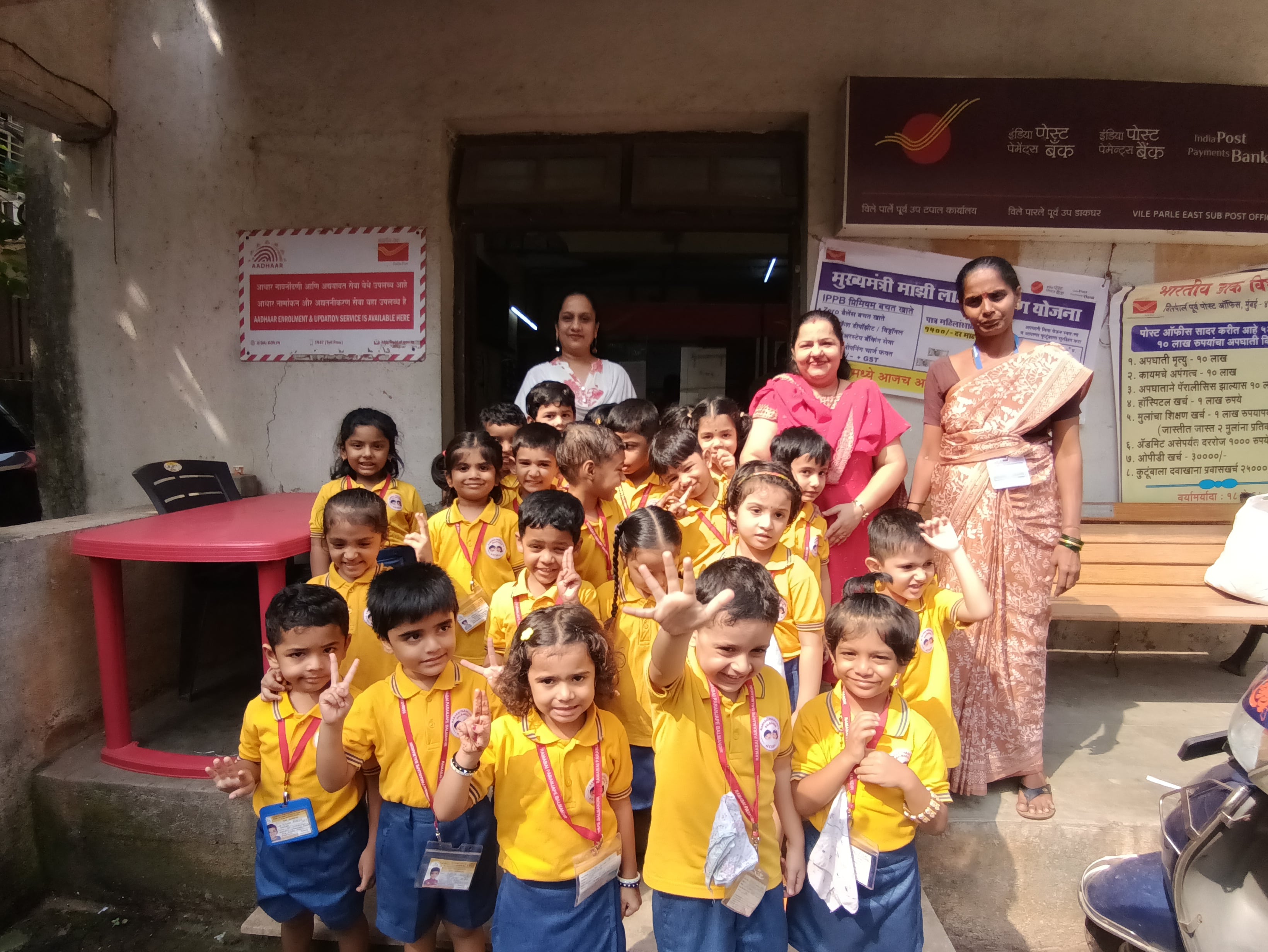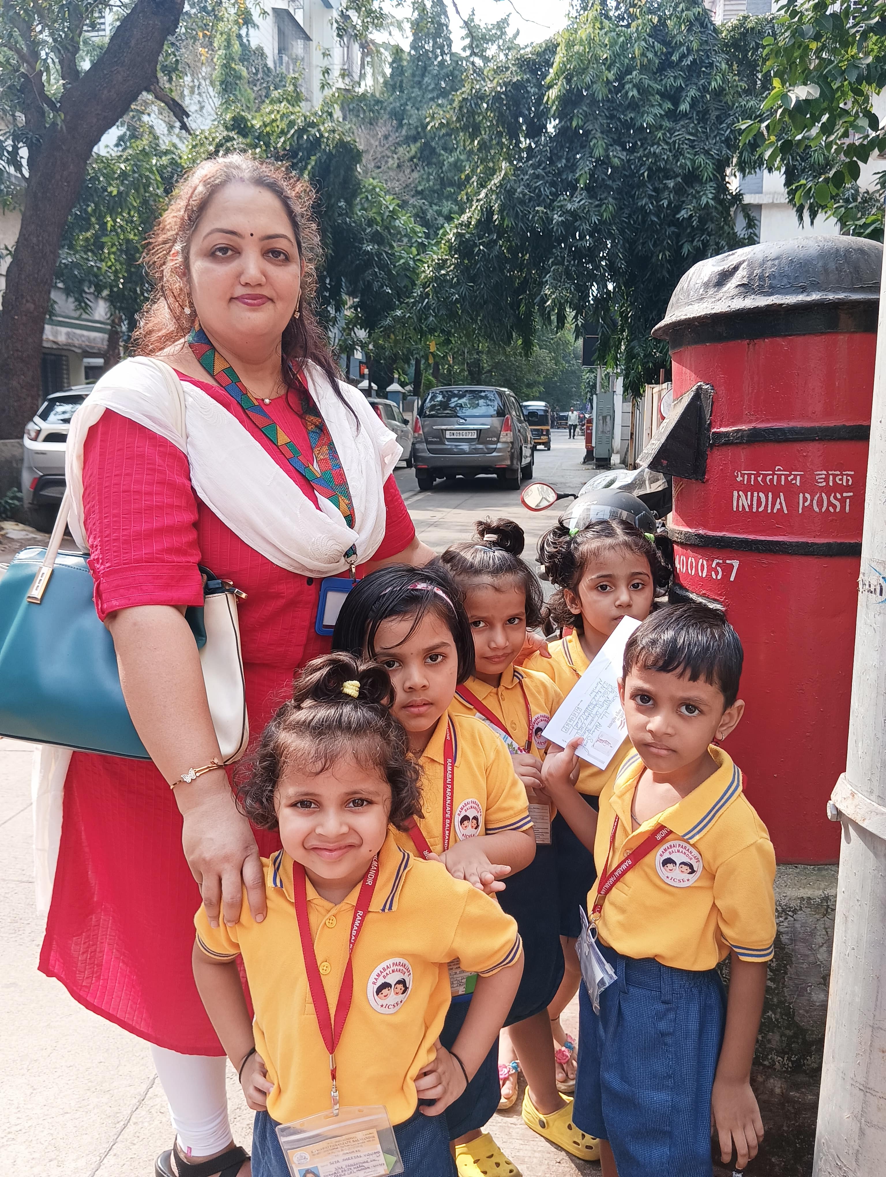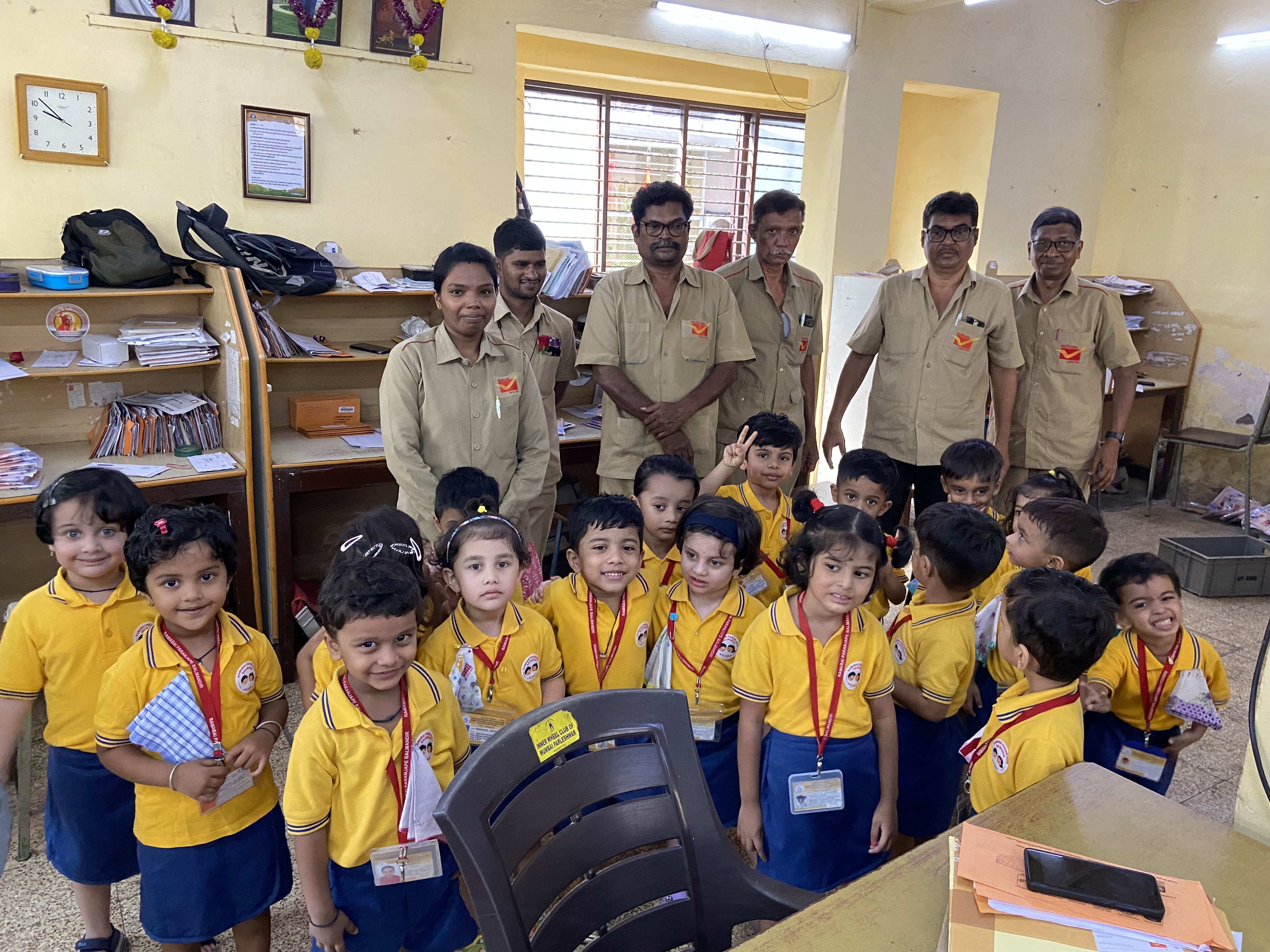 A field trip was organised to the Post Office for Jr. KG children. Information about working of postman was explained to the children.