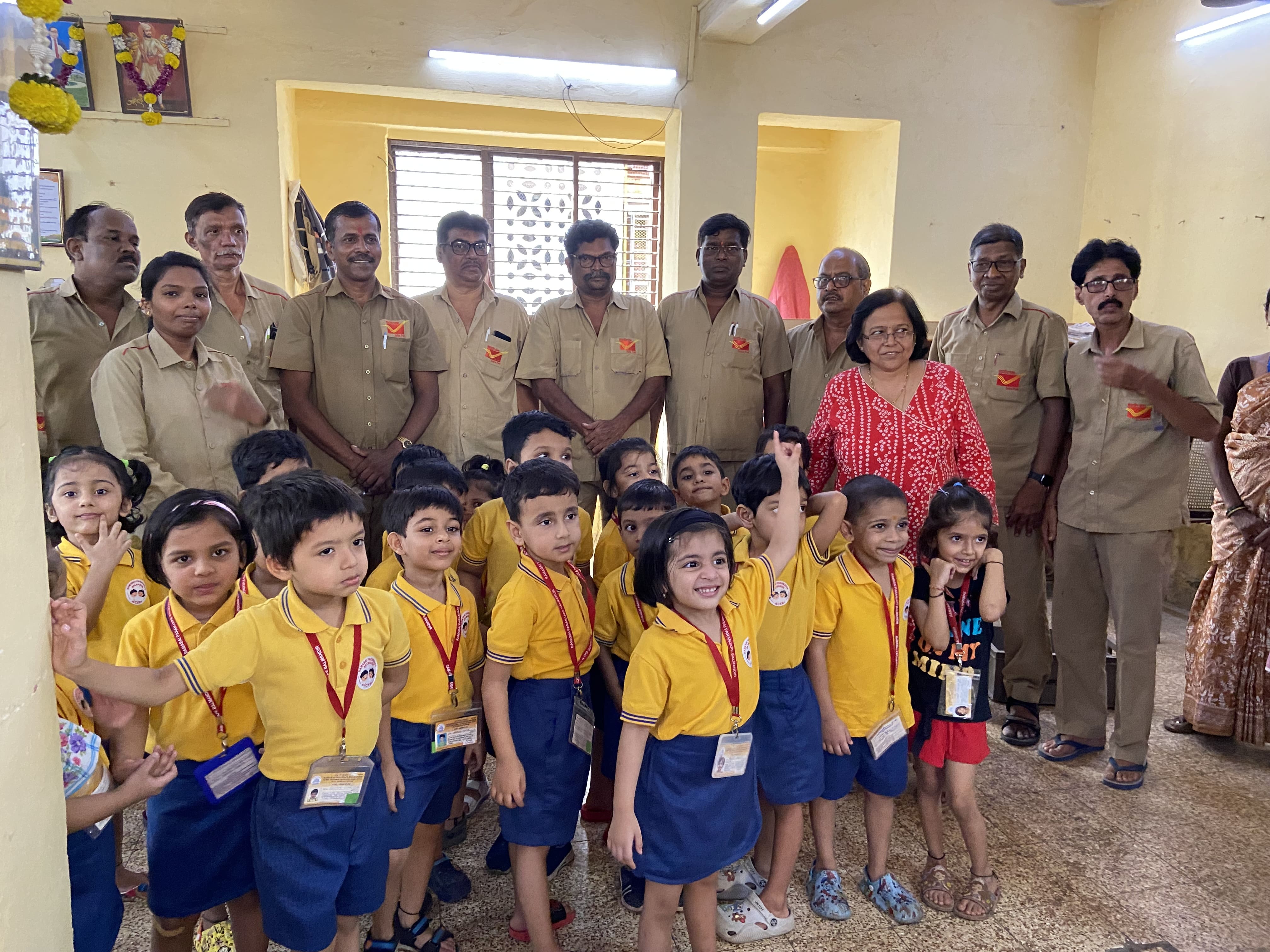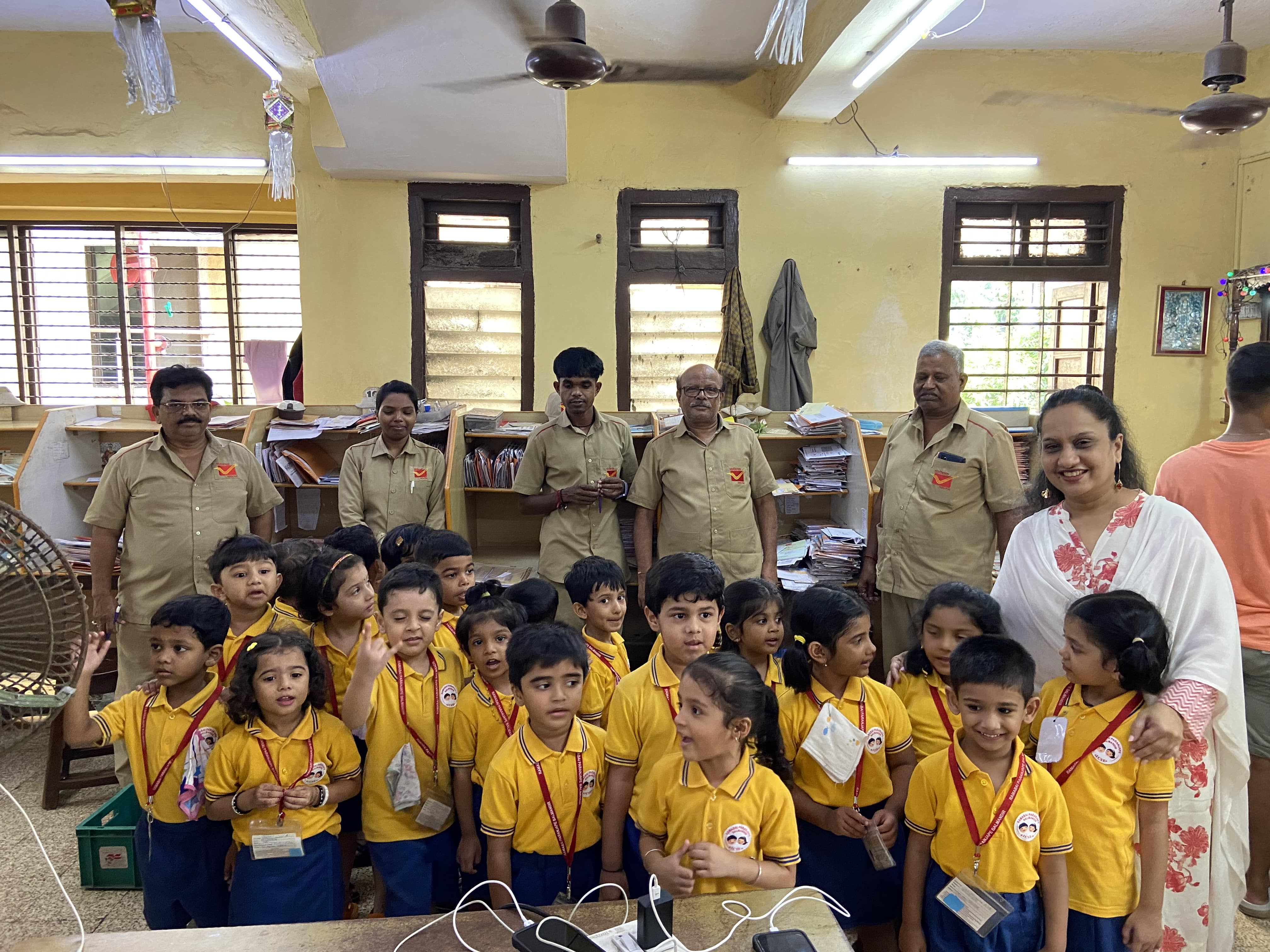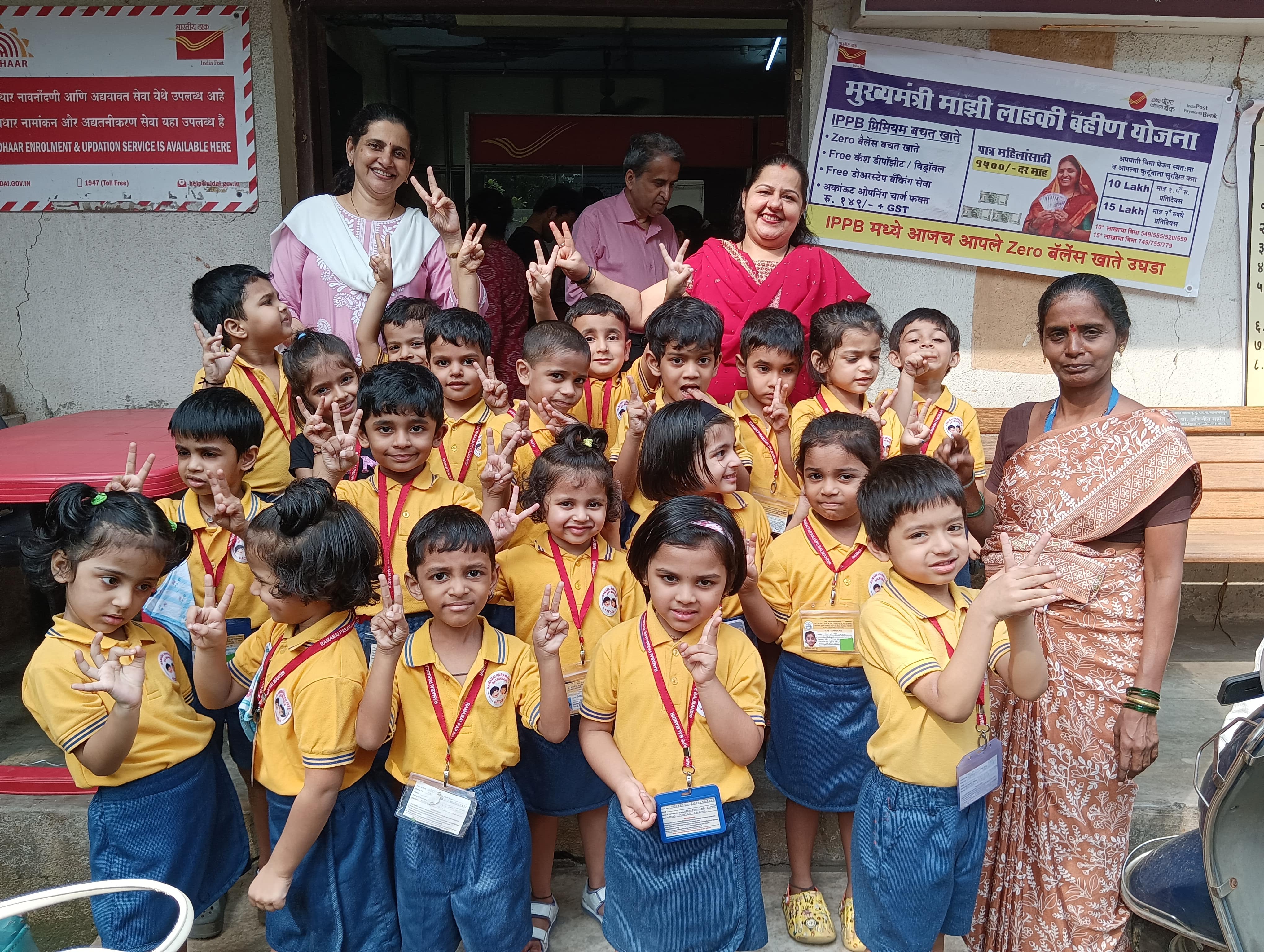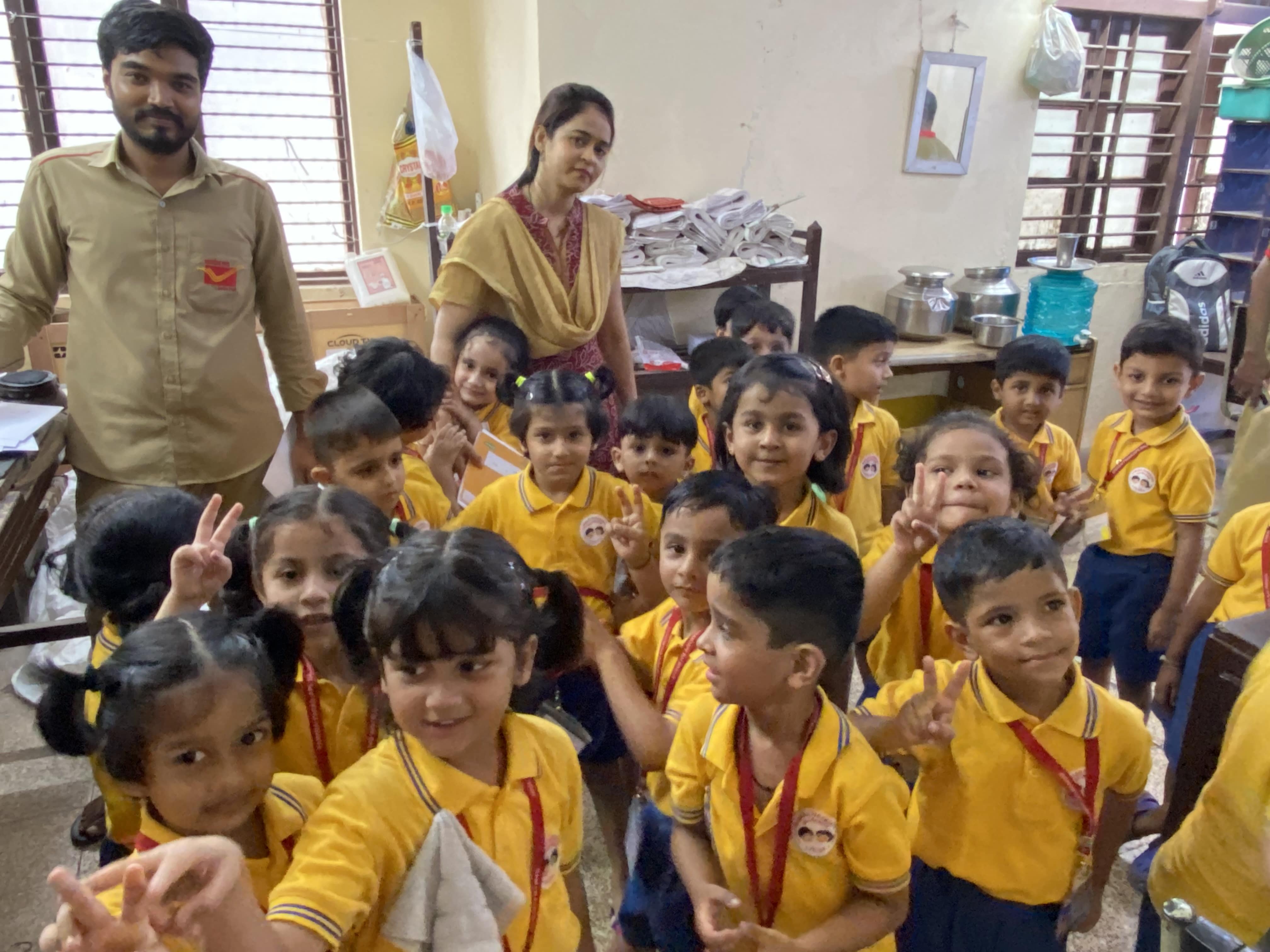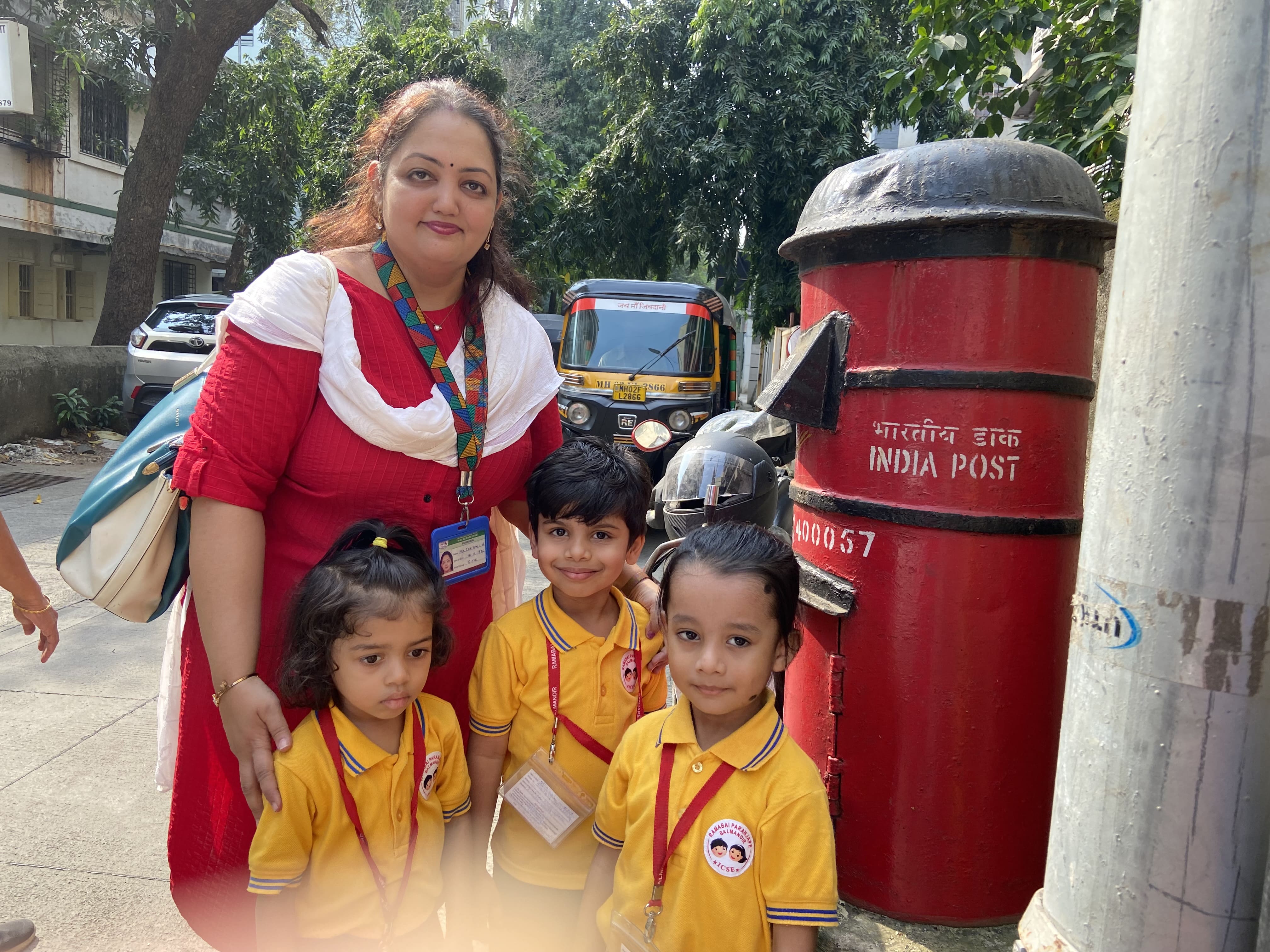 A field trip was organised to the Post Office for Jr. KG children. Information about working of postman was explained to the children.