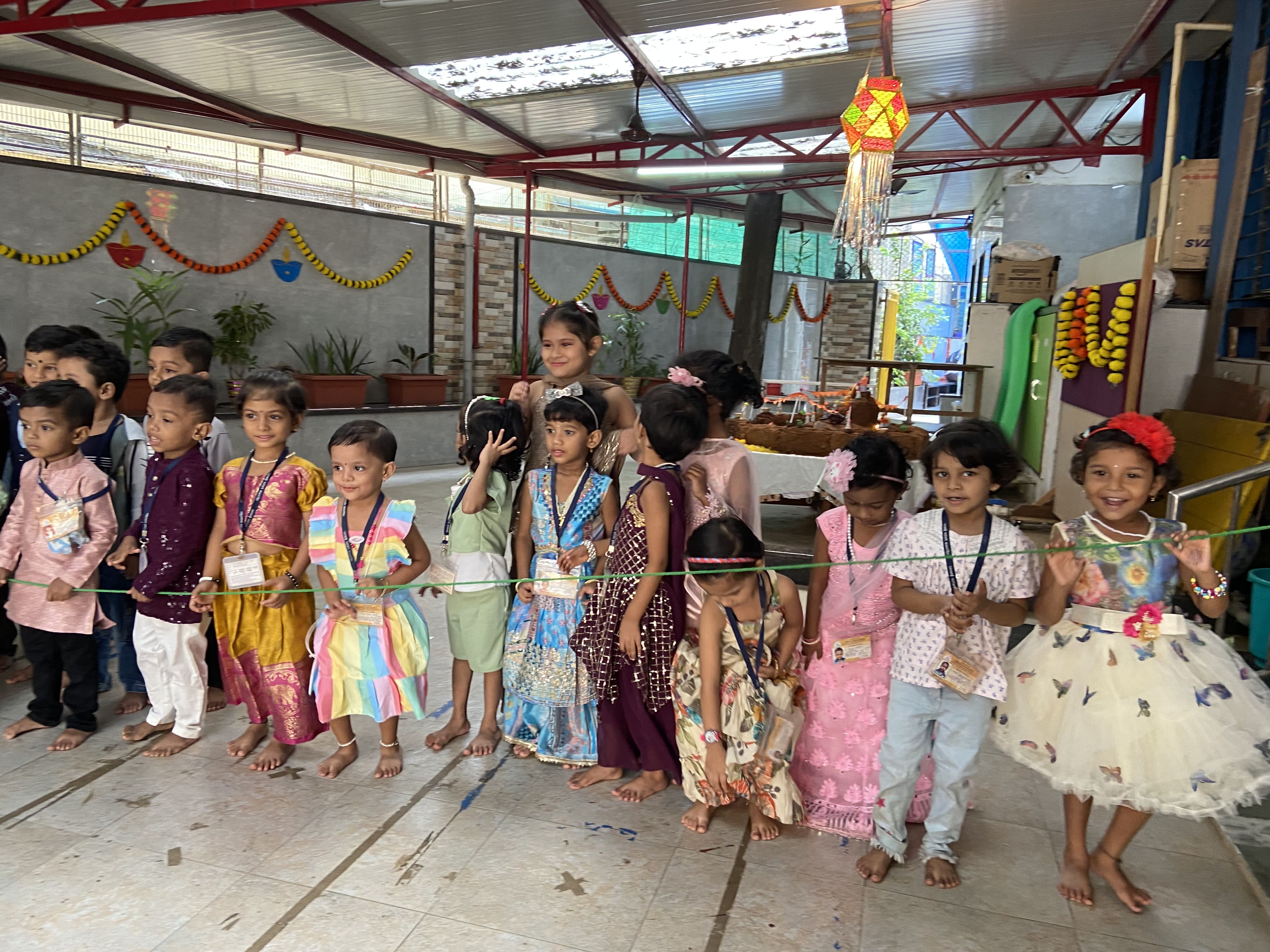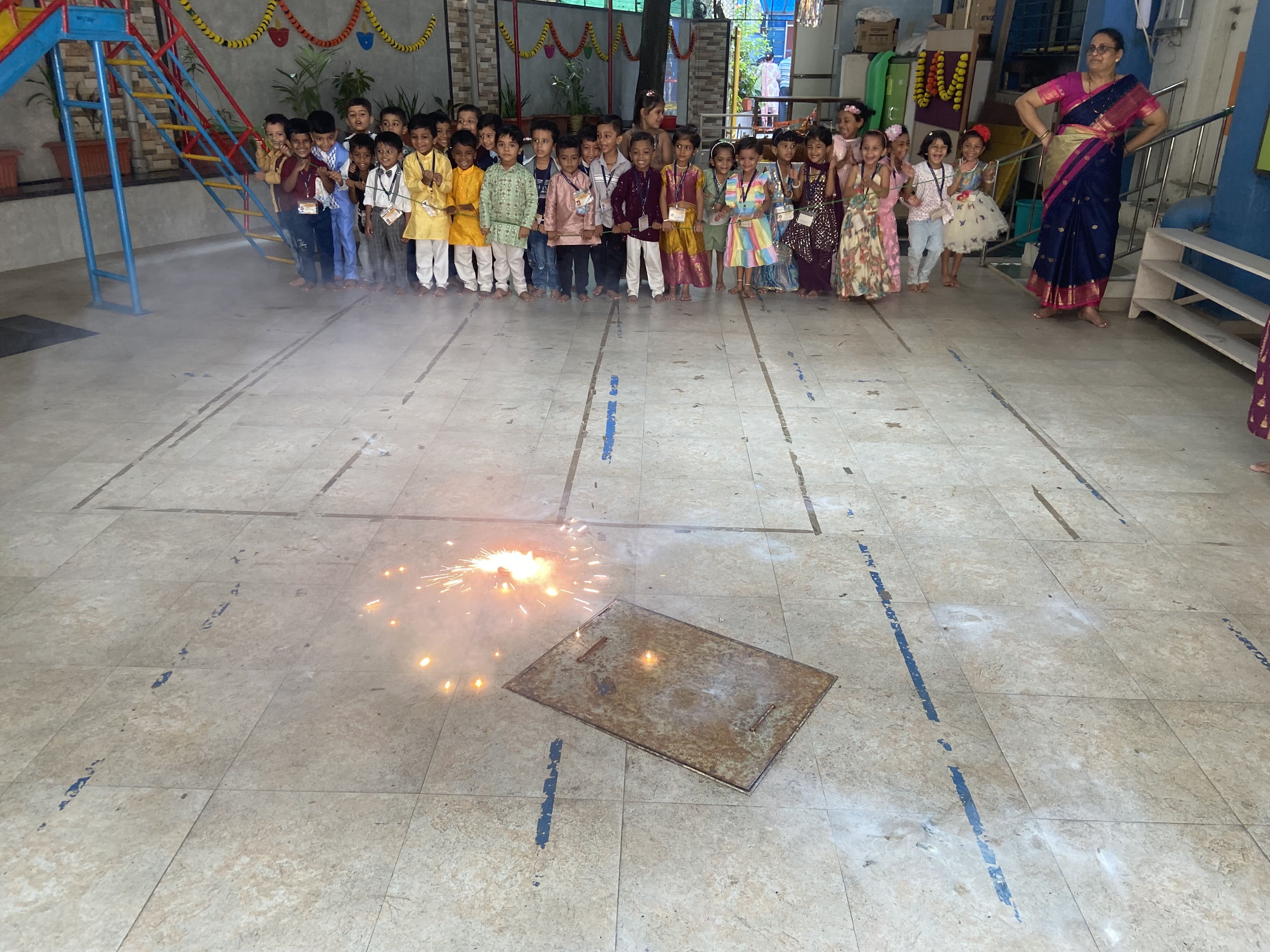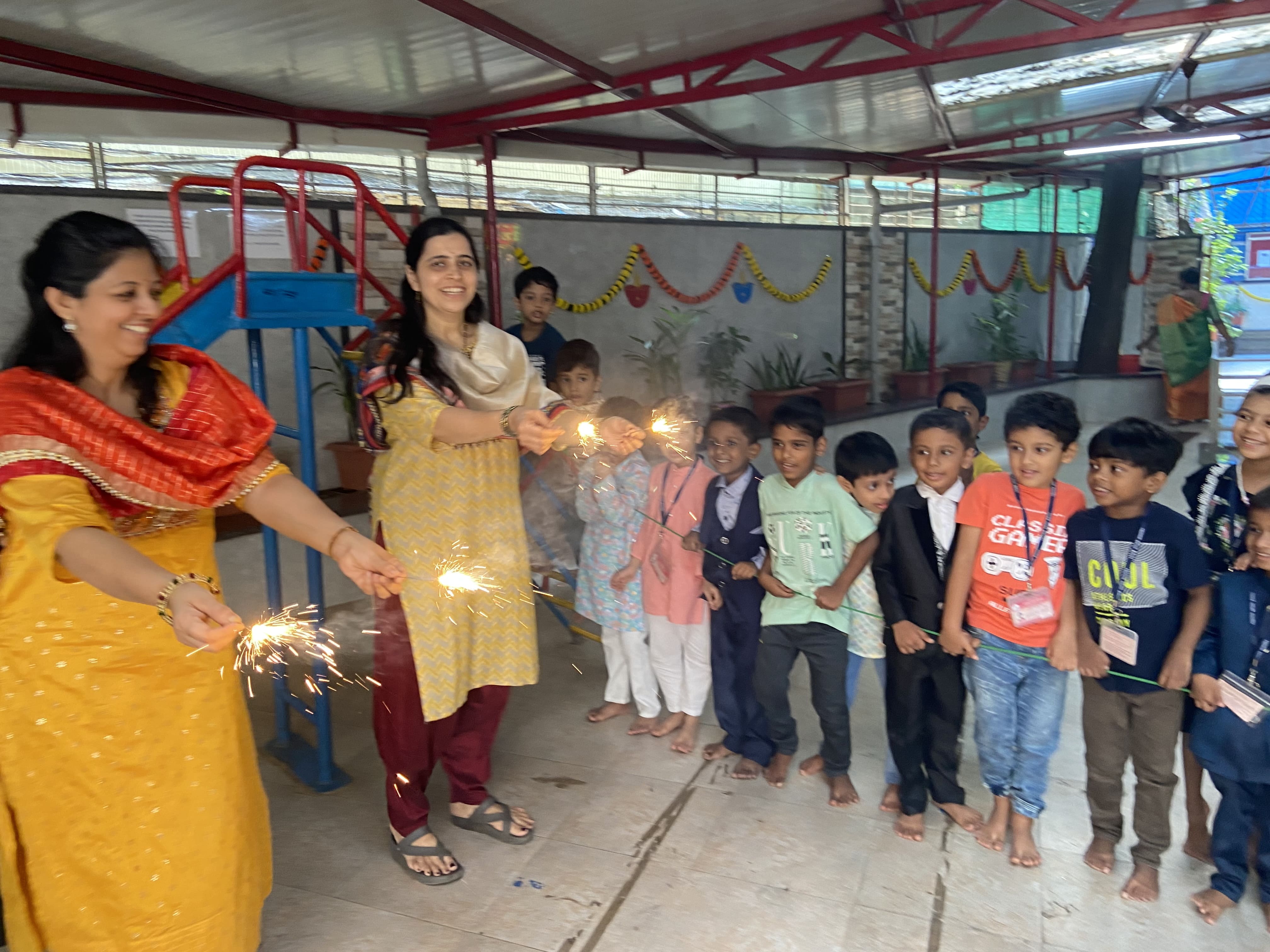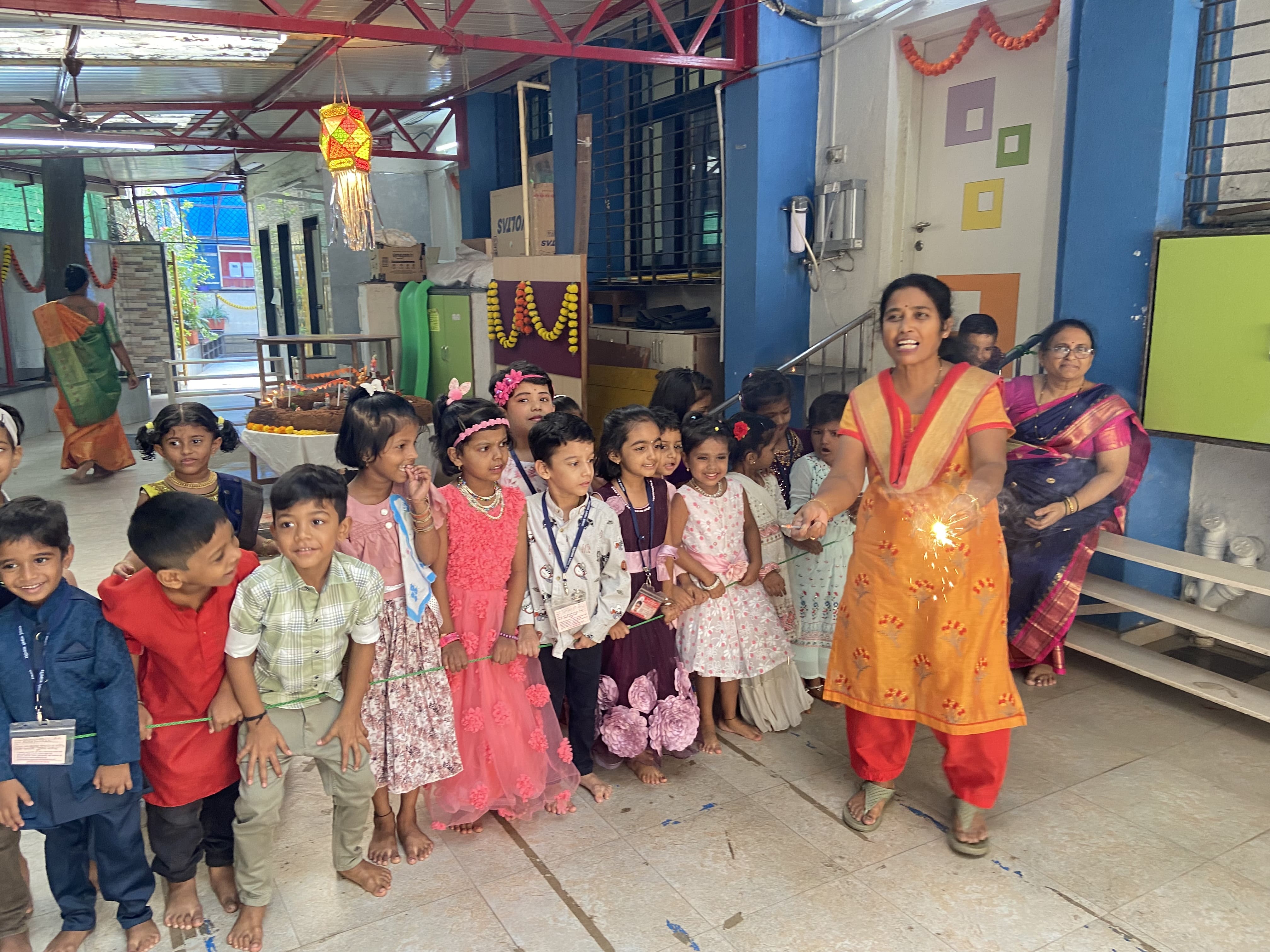 गुरुवार, दिनांक २४ ऑक्टोबर रोजी शाळेत सगळीकडे सजावट करून रोषणाई केली होती. शाळेत ताईनी न वाजणारे फटाके वाजवून मुलांबरोबर दिवाळी साजरी केली.