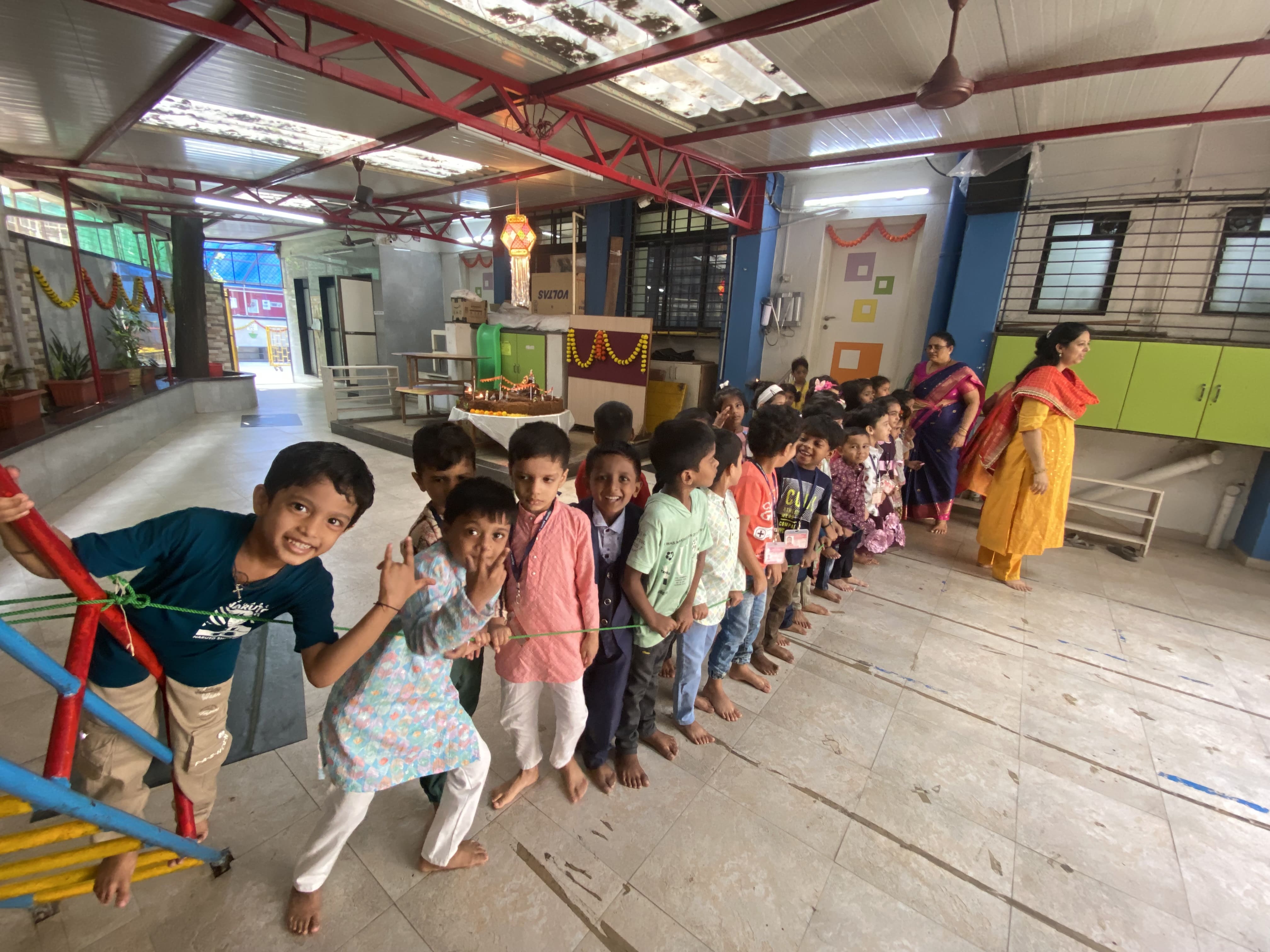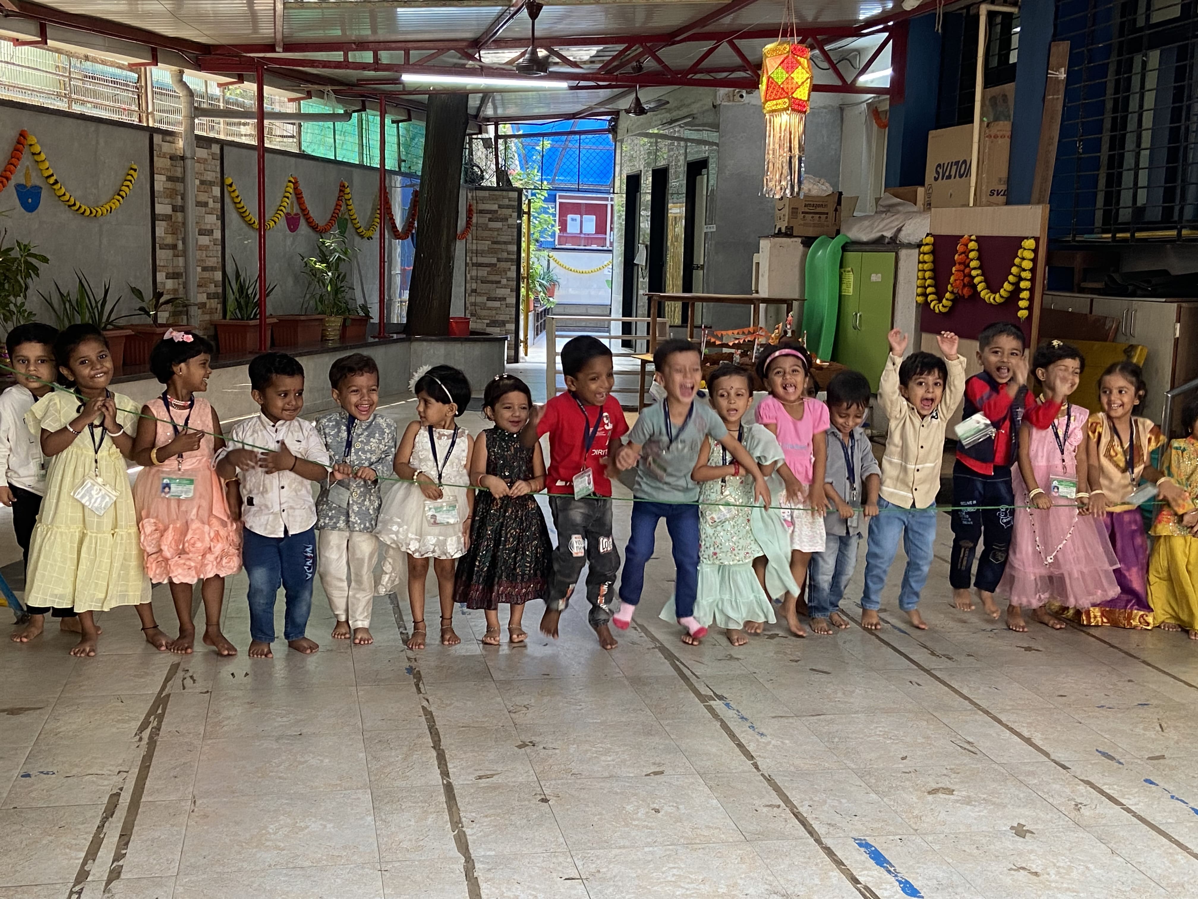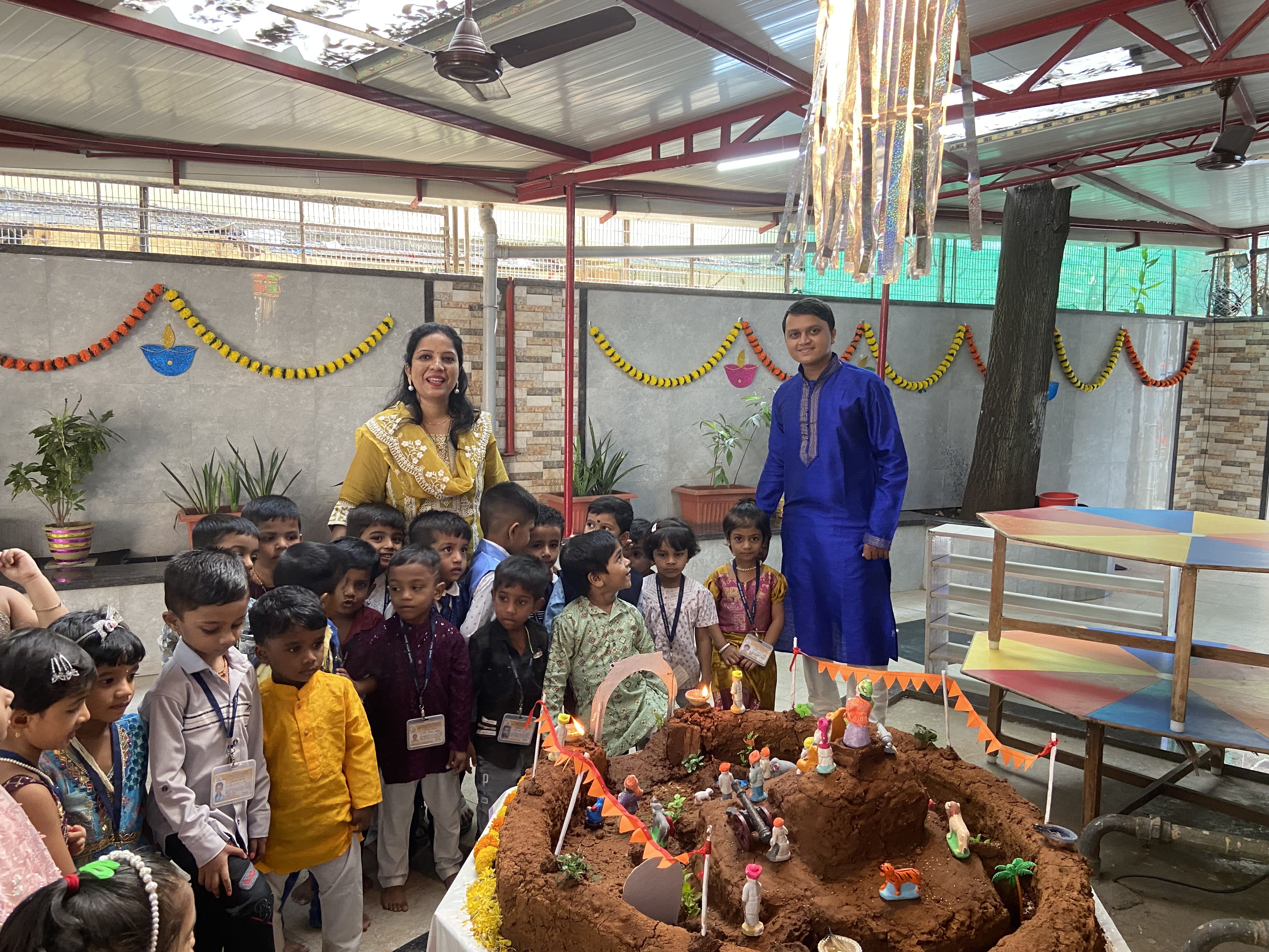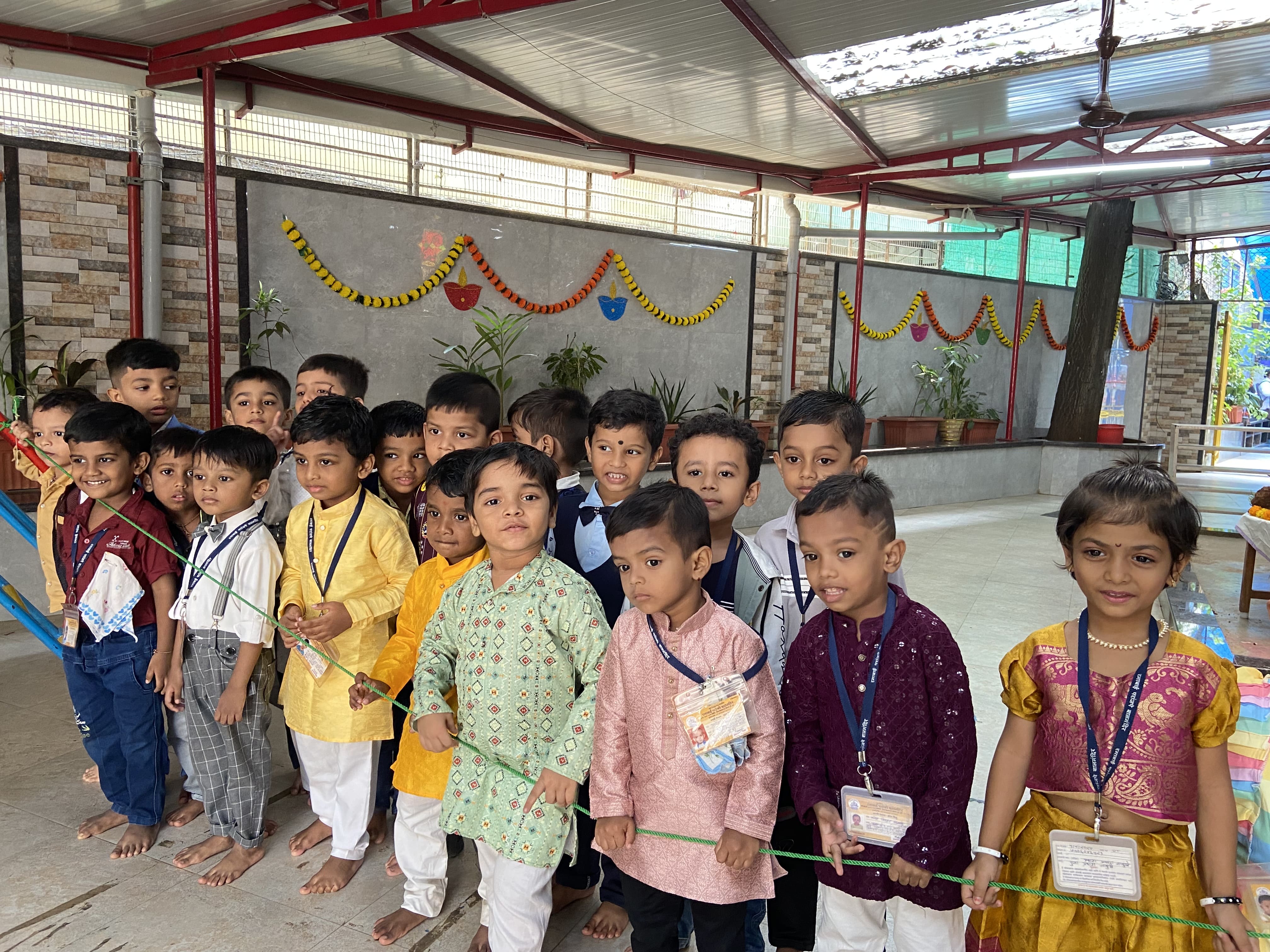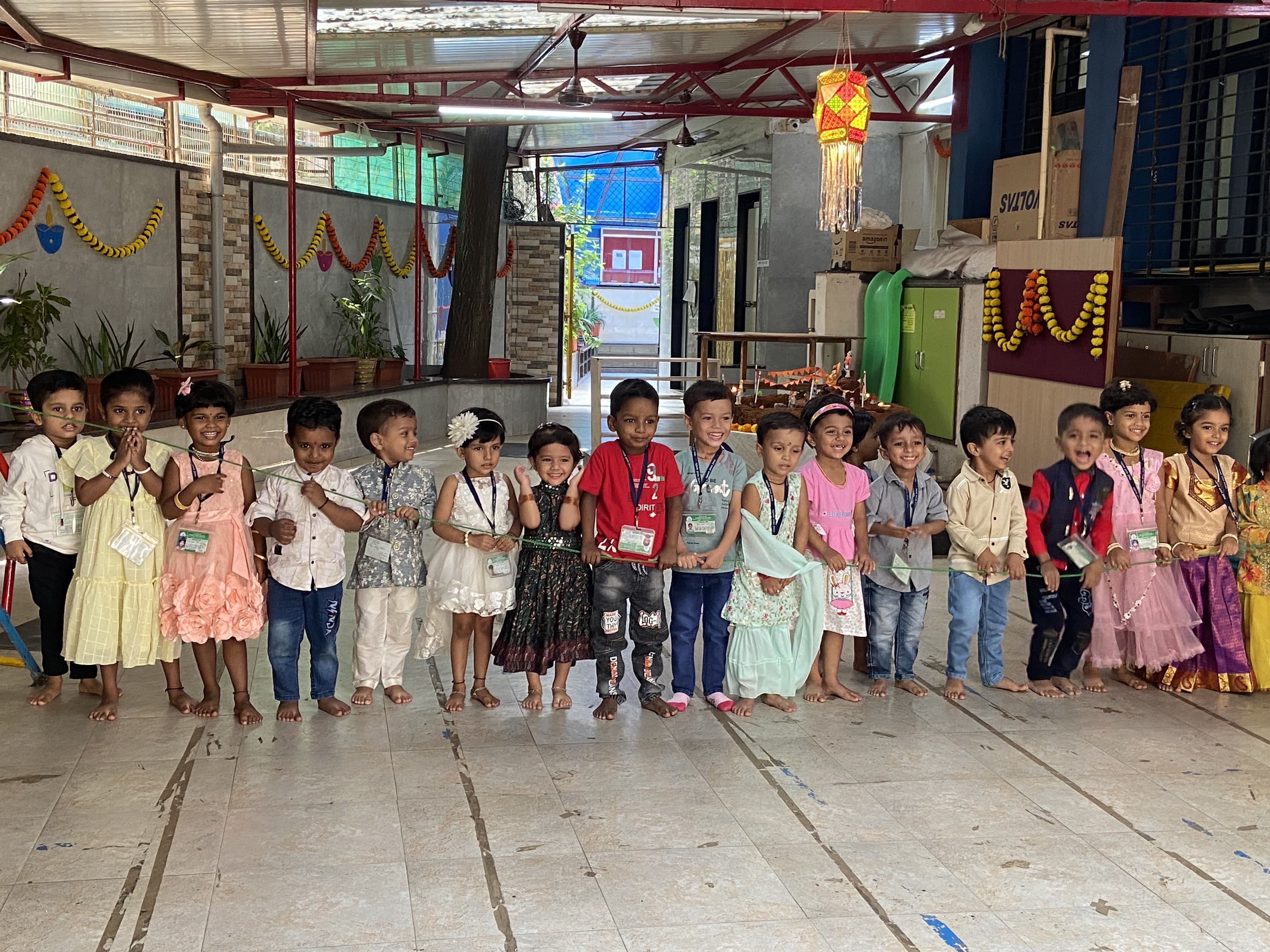 गुरुवार, दिनांक २४ ऑक्टोबर रोजी शाळेत सगळीकडे सजावट करून रोषणाई केली होती. शाळेत ताईनी न वाजणारे फटाके वाजवून मुलांबरोबर दिवाळी साजरी केली.