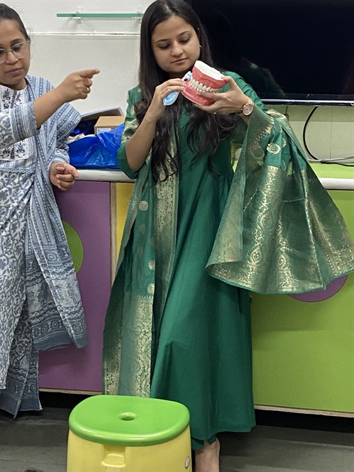 मुलांनी दातांची निगा राखण्याचे महत्त्व शिकले.