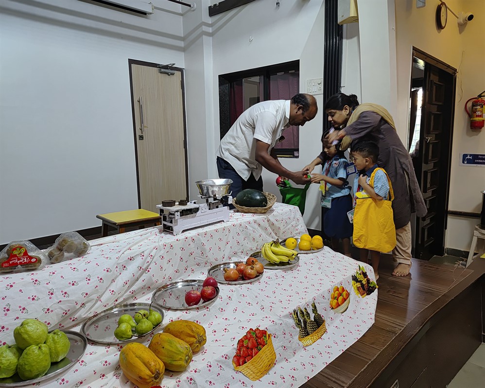 Tiny tots role-played as fruit vendors, learning values of trade and healthy eating.