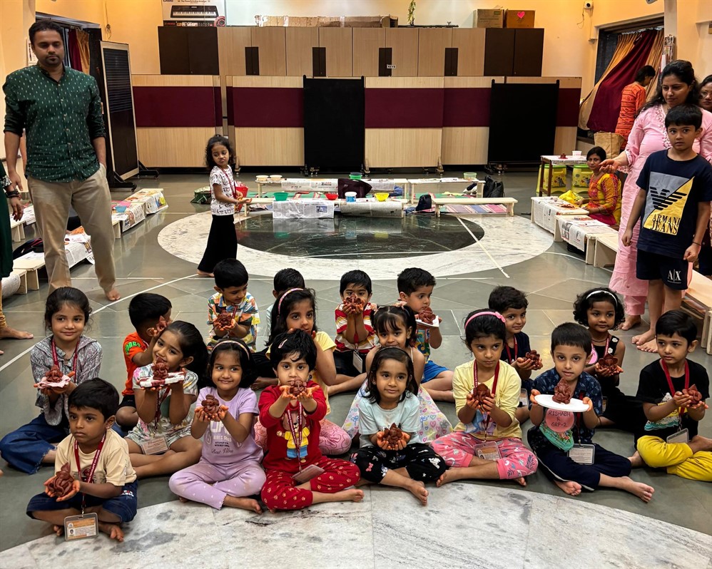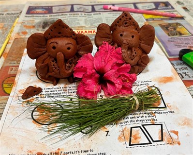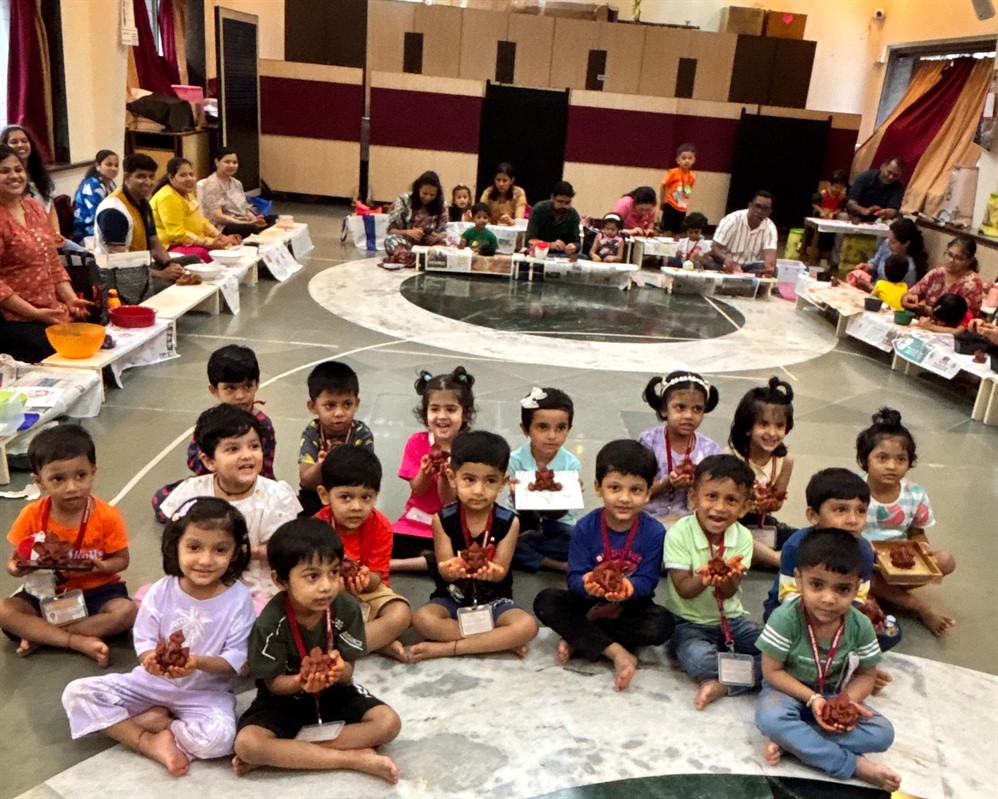 Children joyfully sculpted their own eco-friendly Ganapati idols, fostering creativity and cultural awareness.