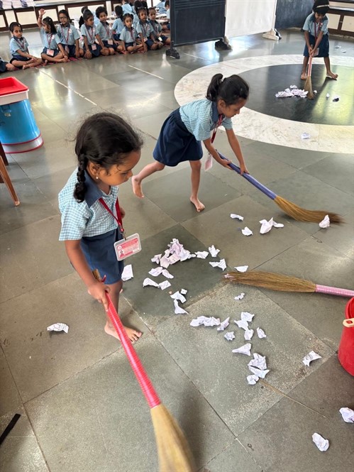 Gandhi Jayanti was celebrated on 3rd October2025 in the school. The information regarding Rashtrapita Mahatma Gandhi was given to the children. Information about ‘Importance of cleanliness in life’ was given to the children.