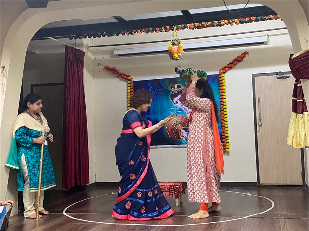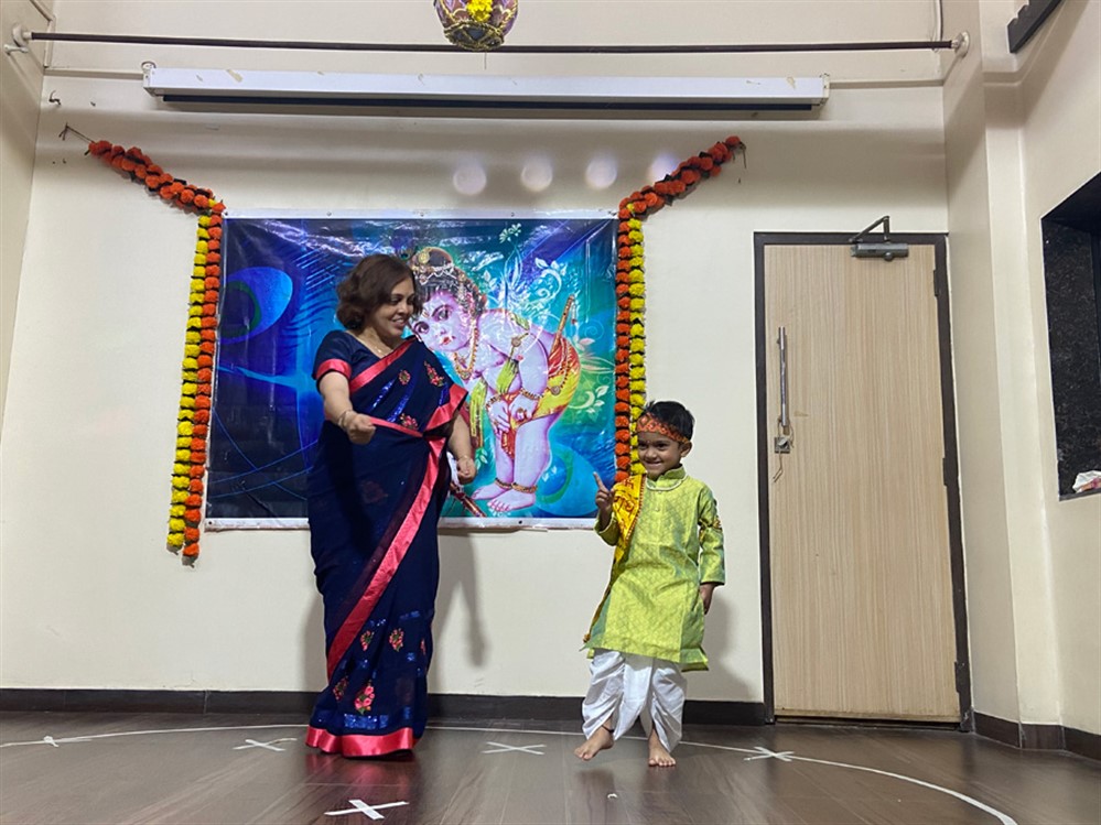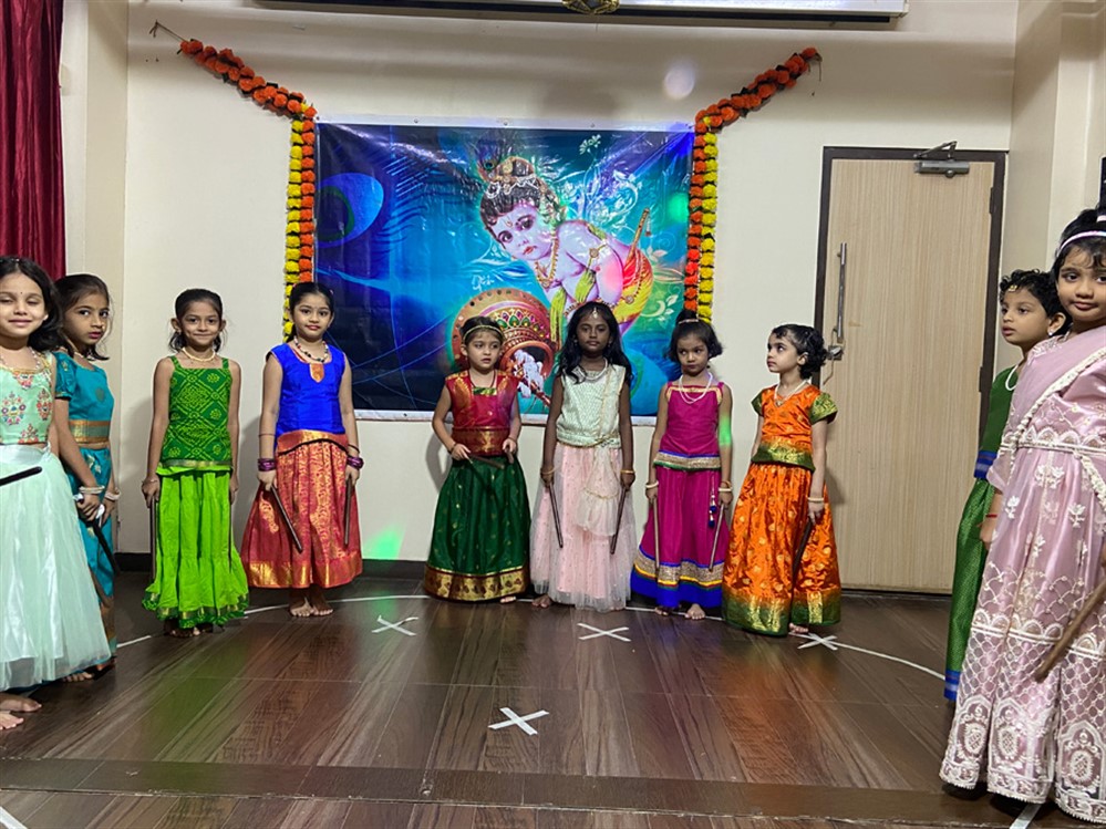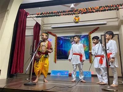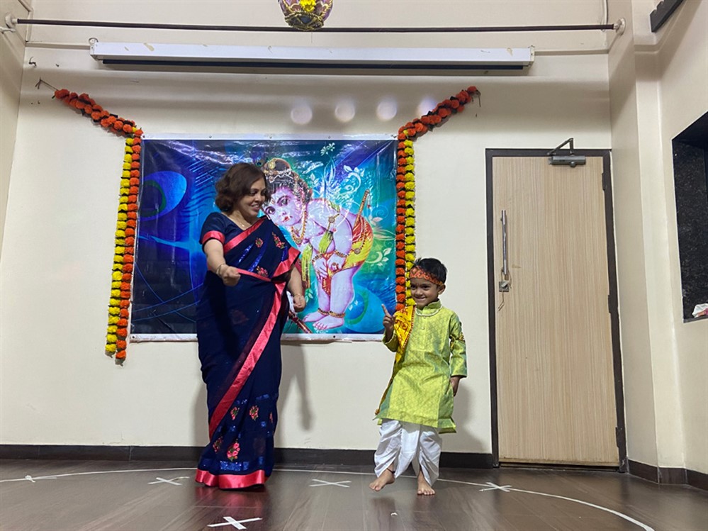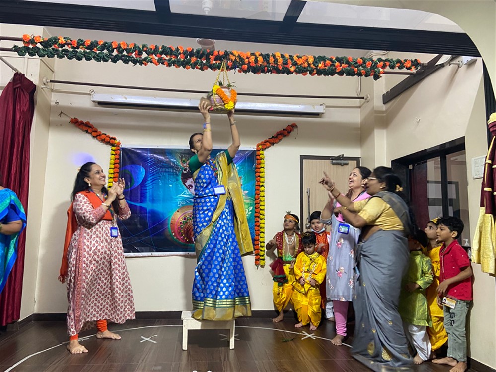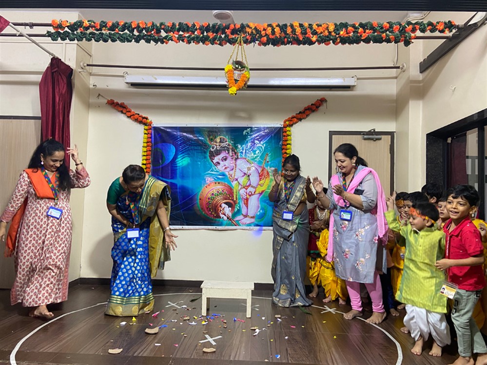The celebration starts with Pooja, Aarti followed by singing devotional songs of lord Krishna. Historical events like ‘Krishnajanma in Prison’ & ‘naming ceremony at Gokul’ are dramatised by the teachers. Even children present small skit based on the story of “Kaliyamardan”. The celebration is concluded by breaking handi & serving delicious snacks to the children.