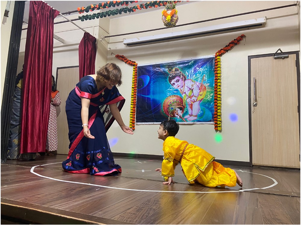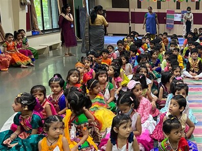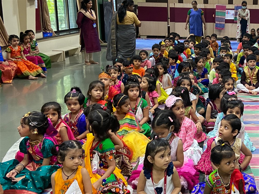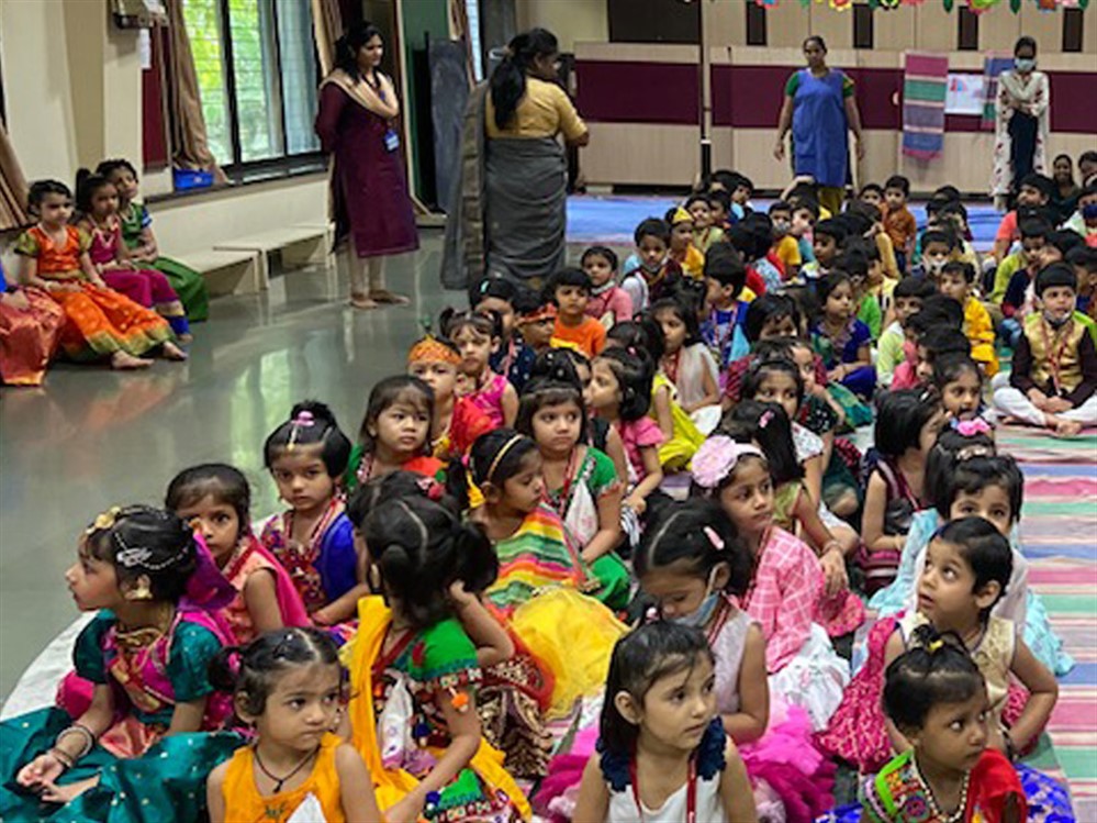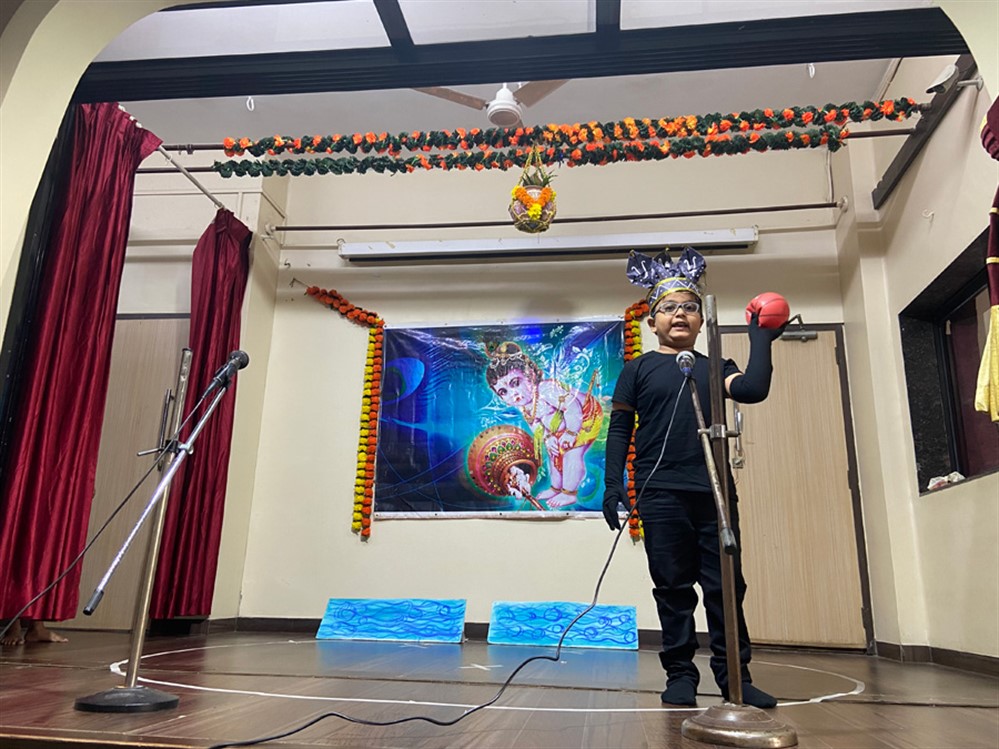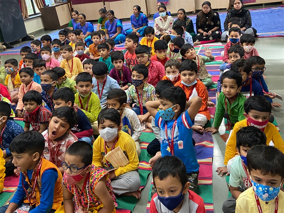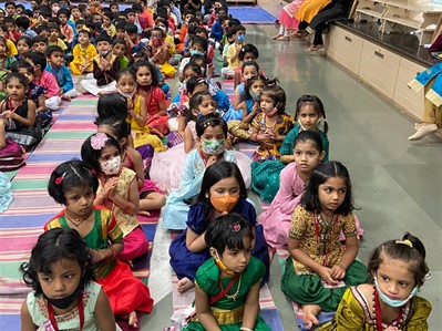 The celebration starts with Pooja, Aarti followed by singing devotional songs of lord Krishna. Historical events like ‘Krishnajanma in Prison’ & ‘naming ceremony at Gokul’ are dramatised by the teachers. Even children present small skit based on the story of “Kaliyamardan”. The celebration is concluded by breaking handi & serving delicious snacks to the children.