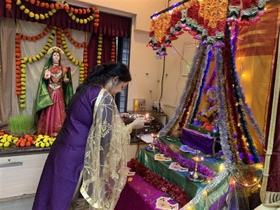 On the auspicious occasion of Dassera, children prayed to Godess Saraswati by offering flowers and singing songs and sought her blessings.
