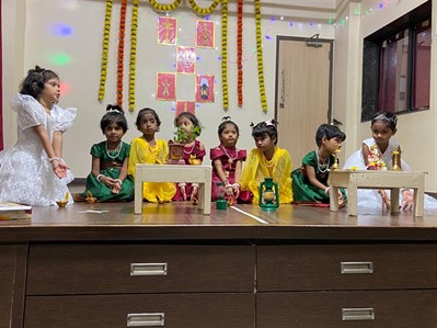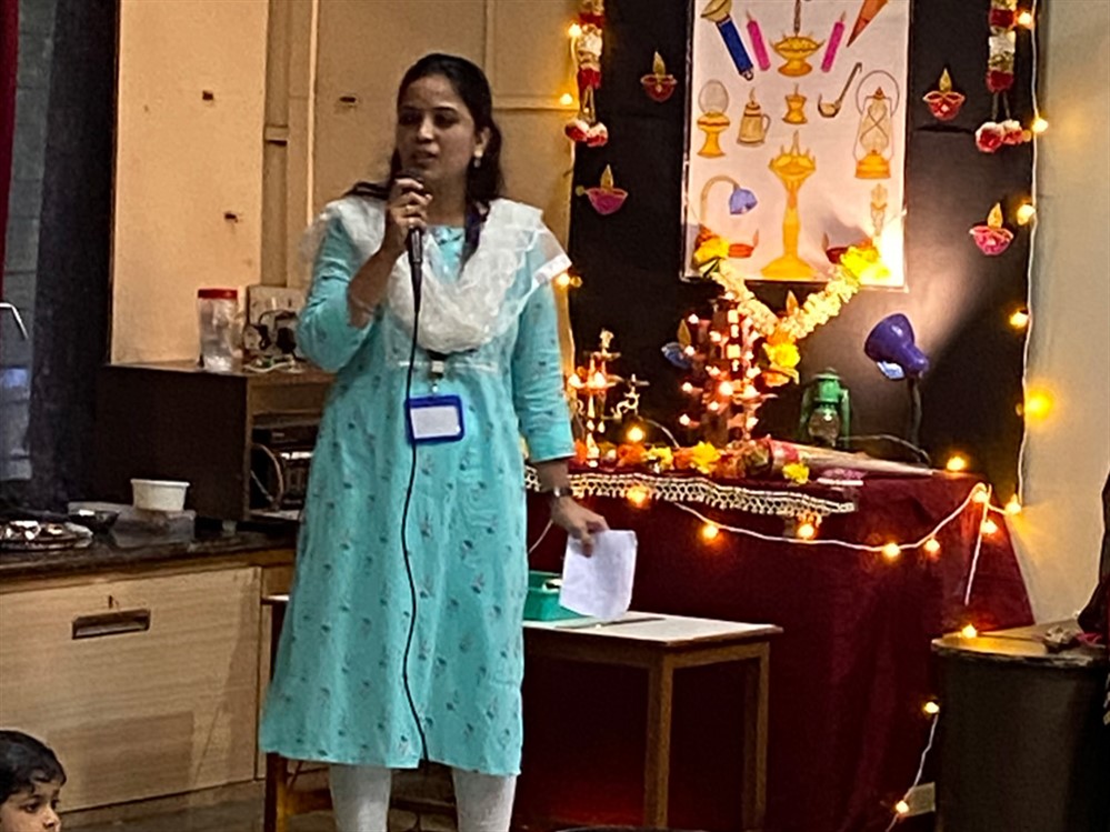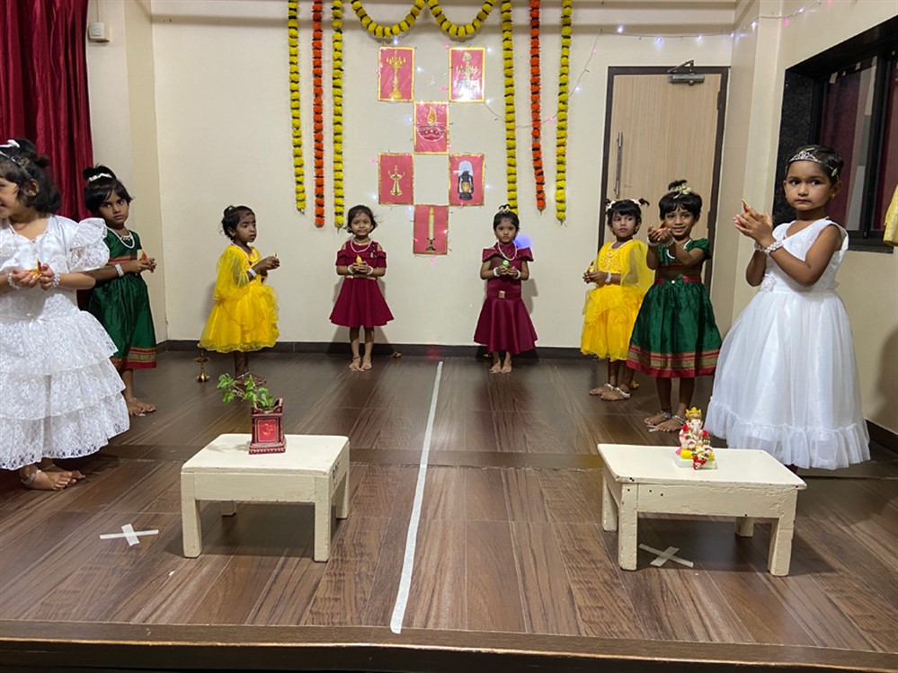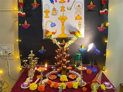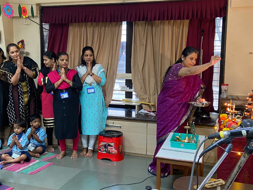 आषाढ महिन्याच्या शेवटच्या दिवसाला "आषाढ अमावास्या” असे म्हणतात. या दिवशी घरातील दिवे म्हणजे समई, निरांजन इ. घासून स्वच्छ करून लख्ख करून पाटावर मांडून समोर रांगोळी काढून, त्यांची पूजा केली जाते. घरातील रोगराई, अज्ञान, इडापीडा दूर होवून ज्ञानाचा प्रकाश पसरावा या करता दीपपूजन केले जाते. आपल्या शाळेतही मुलांना दिव्यांचे वेगवेगळे प्रकार दाखवून त्यांचे महत्व सांगितले गेले. व त्यांची पूजा केली गेली. मोठ्या शिशूच्या मुलांनी दिव्याचे नाटक सादर केले. छोट्या शिशूच्या मुलींनी दिव्यांचा नाच केला. मुलांना साखर फुटाण्याचा खाऊ प्रसाद म्हणून दिला गेला.