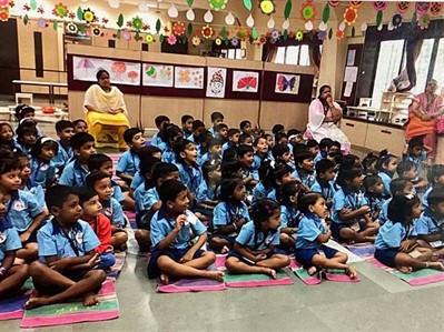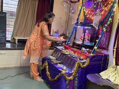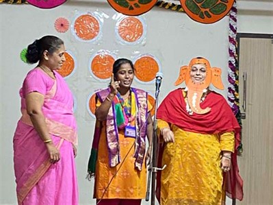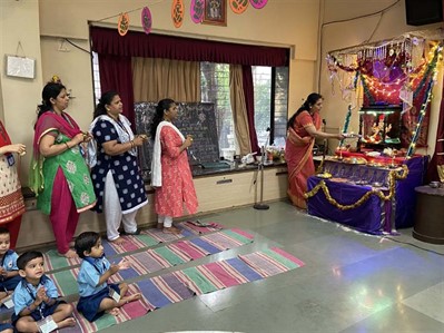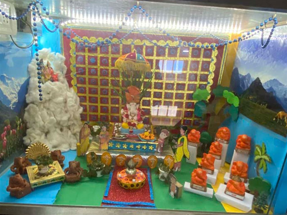 आपल्या शाळेतही गणेशाची बाल मुर्ती आणल्री जाते. आरास व सजावट केली जाते. रोज आरती केली जाते व मुलांना प्रसाद म्हणून वेगवेगळा खाऊ दिला जातो. शिक्षिकानी मुलांना पृथ्वी प्रदक्षिणा हे नाटक करून दाखवले, गणपतीची गोष्ट सांगितली. गणेशोत्सवाचा हा १० दिवस चालणारा सोहळा अनंतचतुर्टशीला गणपतीच्या मुर्तीचे विसर्जन करून संपतो.