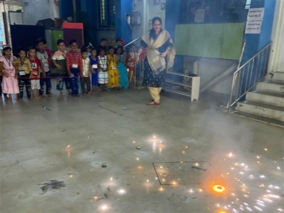 बुधवार दिनांक १९ ऑक्टोबर 2022 रोजी शाळेत सगळीकडे सजावट करून रोषणाई केली होती. शाळेत ताईंनी न वाजणारे फटाके वाजवून मुलांबरोबर दिवाळी साजरी केली.