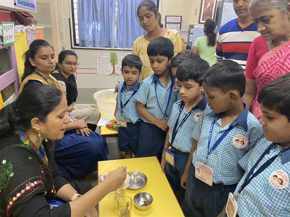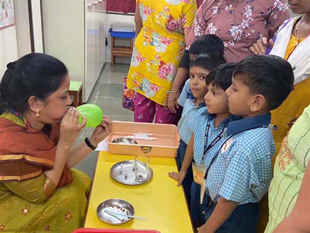 मुलांच्या सर्वांगीण विकासासाठी लागणारी शिकवण्याची व शिकण्याची वेगवेगळी साधने वापरून मोठ्या शिशुच्या मुलांसाठी शाळेत एक कृतीसत्राचे आयोजन केले होते.