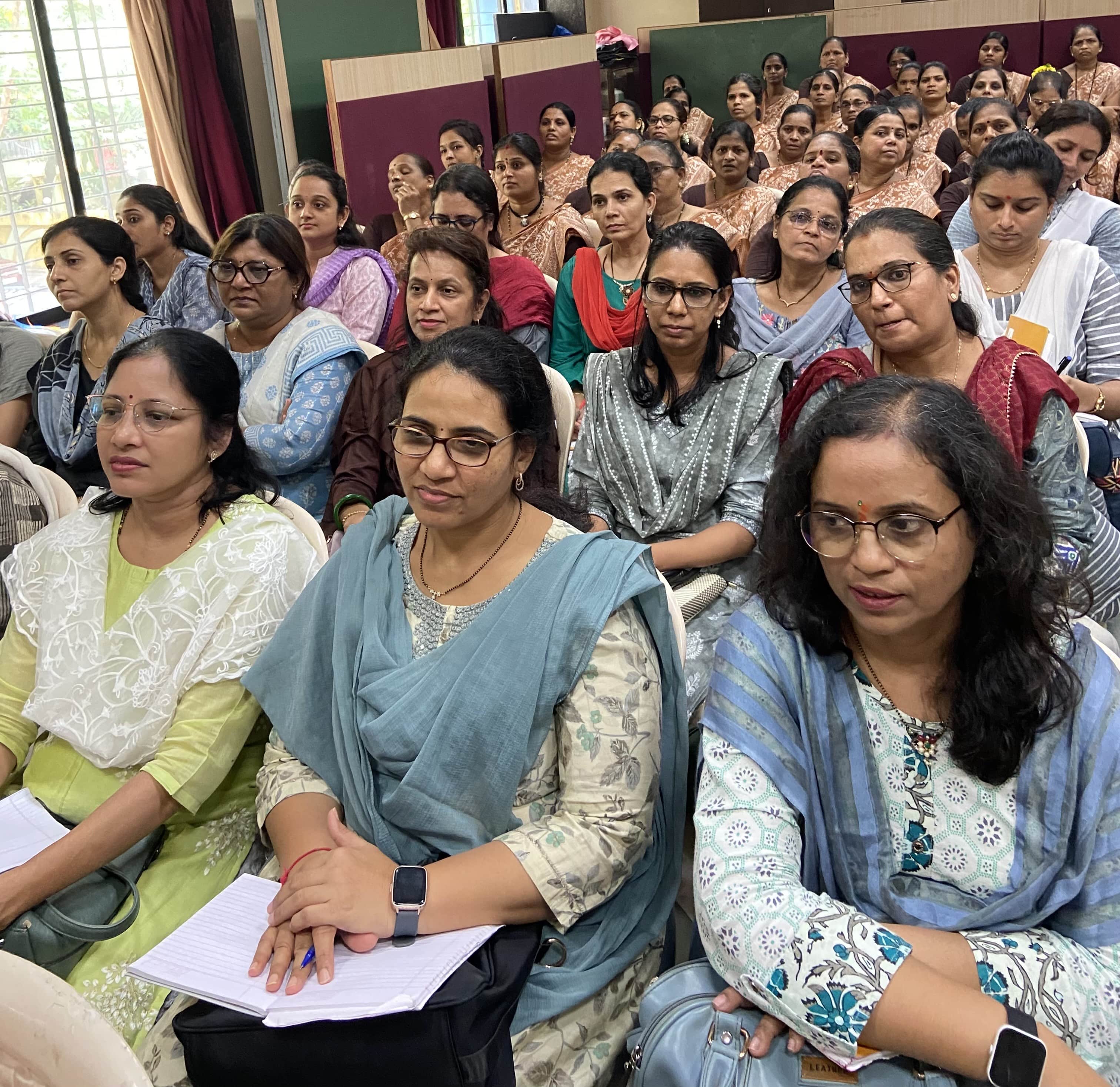 A guidance lecture on the POCSO Act was organized by the school on Saturday, 5th October 2024. Mrs. Rajani Salunke, Senior Inspector from Vile Parle Police Station, was the speaker. She informed the entire school staff, maids, and transport personnel about the significance of the act.