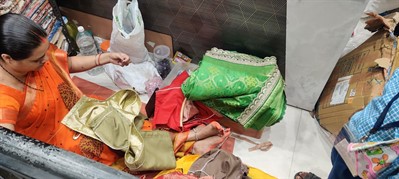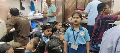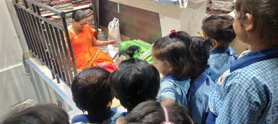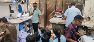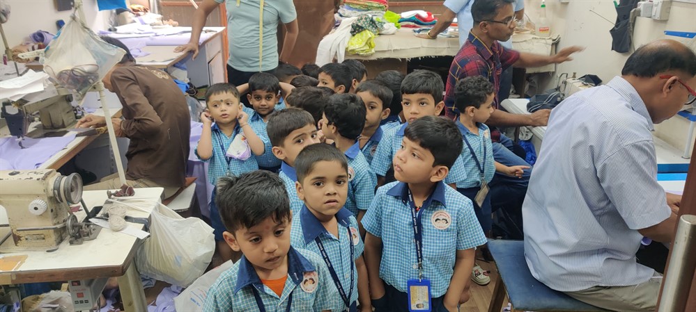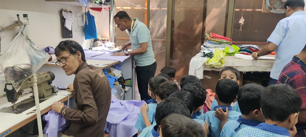 मुलांनी शिलाई दुकानाला भेट देऊन शिलाई कामाची माहिती घेतली.