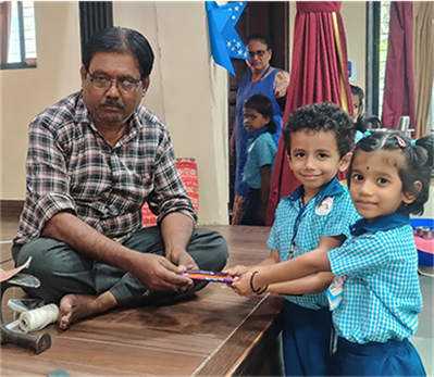 मुलांना समाजातील मदतनीस व्यक्तींचे महत्त्व समजावे म्हणून मोठ्या शिशुच्या मुलांसाठी शाळेत मोची काकांच्या भेटीचे आयोजन करण्यात आले होते.