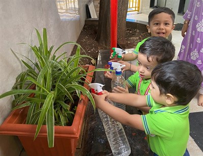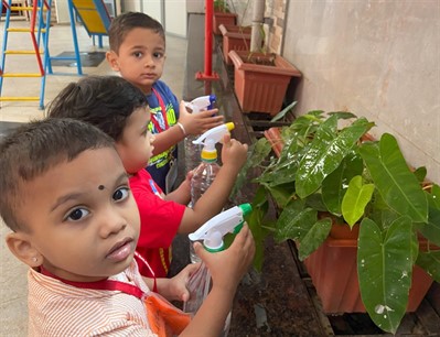 Nurturing nature with little hands – our kids enjoyed watering plants and learning about care and growth.