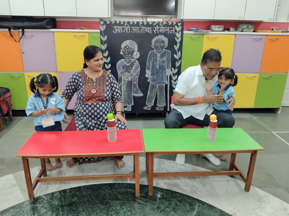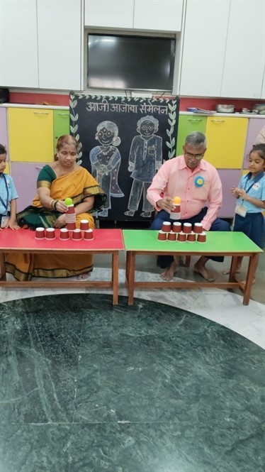 शाळेत आजी आजोबा दिवस साजरा करण्यात आला. या दिवशी आजी आजोबांनी त्यांच्या नातवंडांचा शाळेतला दिवस अनुभवला.